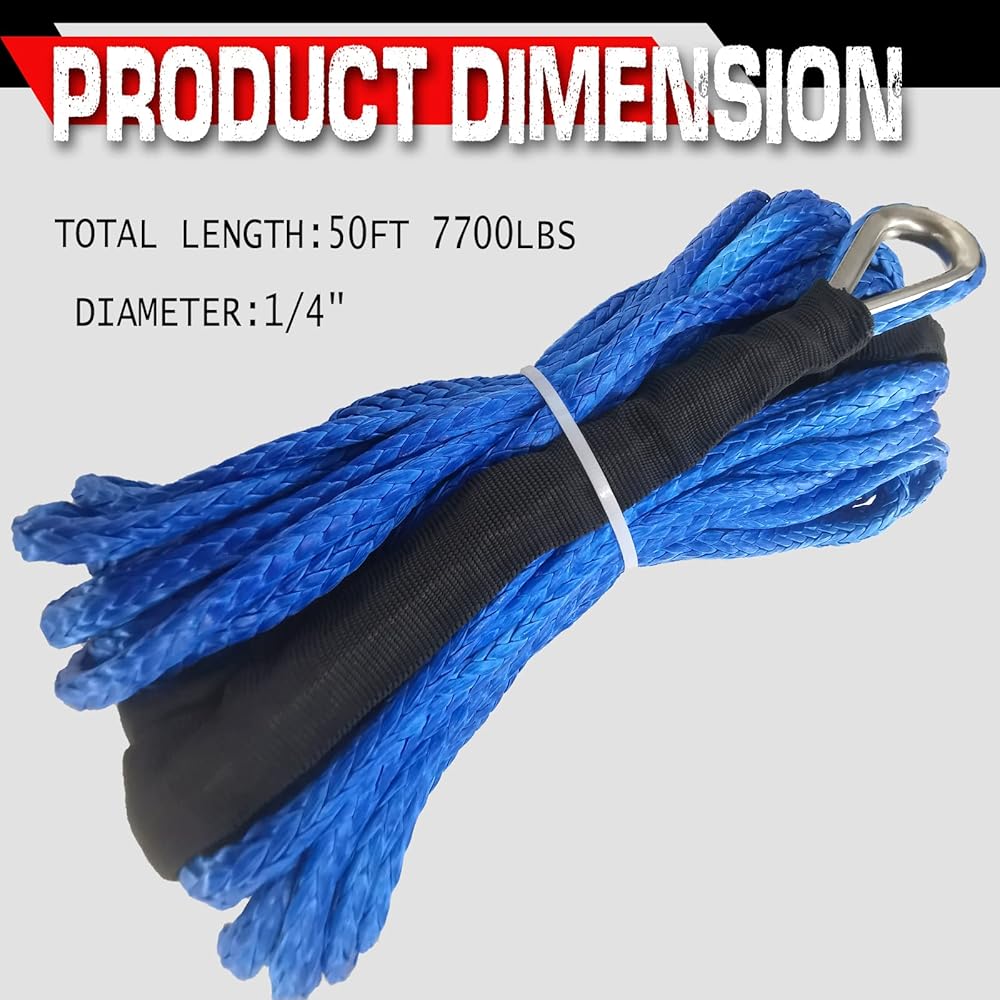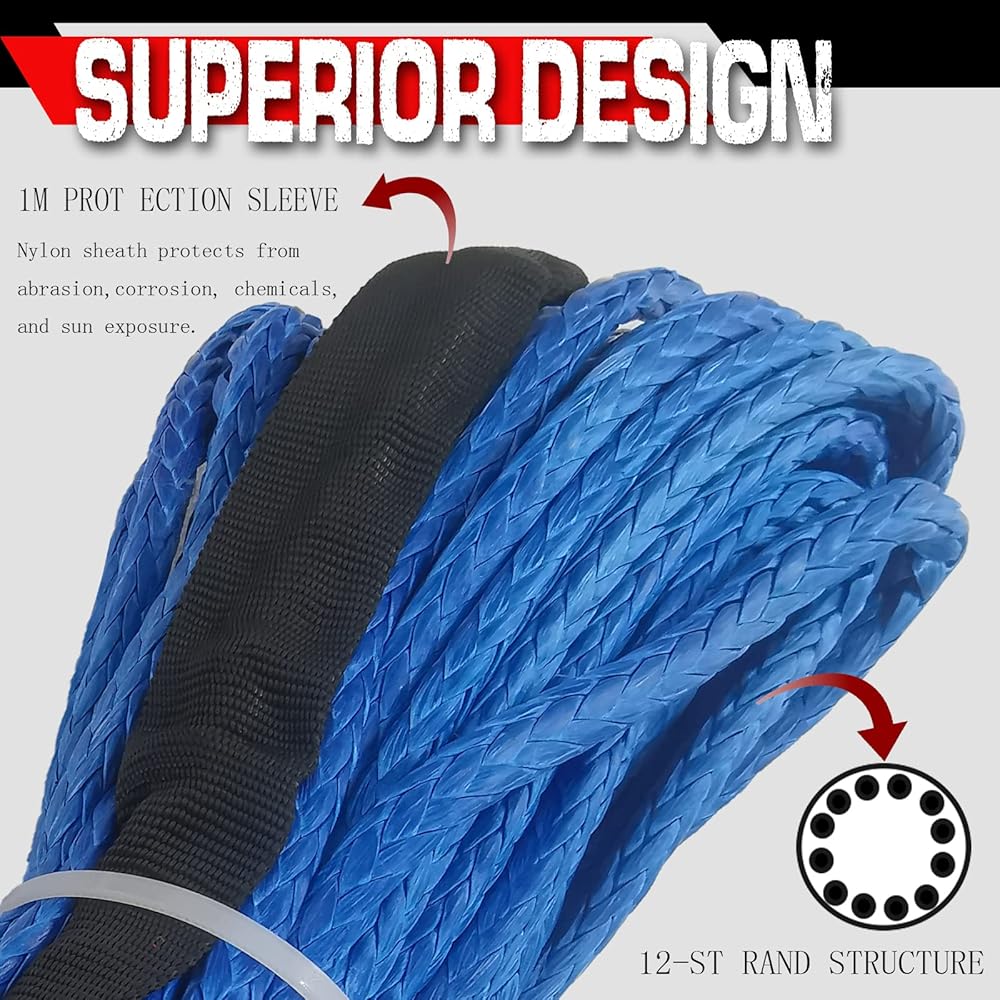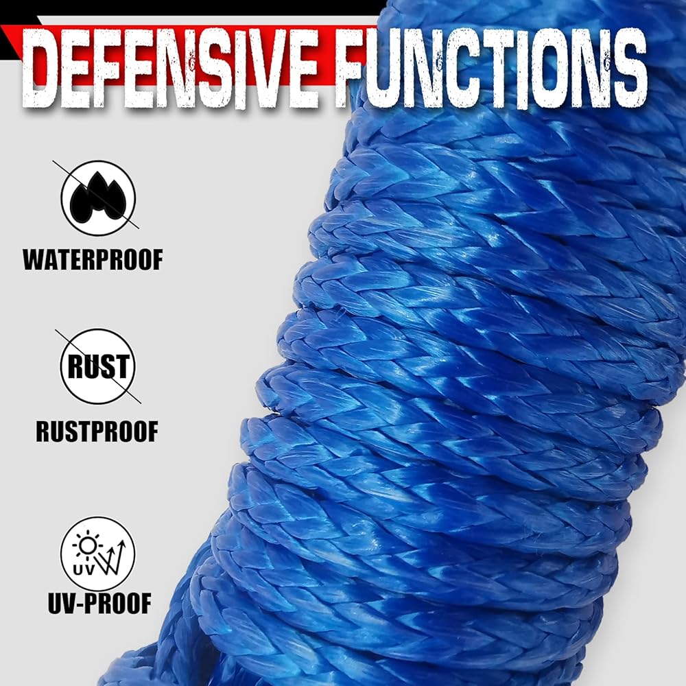 【DEFENSE ABILITY】:Synthetic winch rope coated with polyurethane material, stronger, more durable. rust and waterproof, UV, chemical and weather resistance.