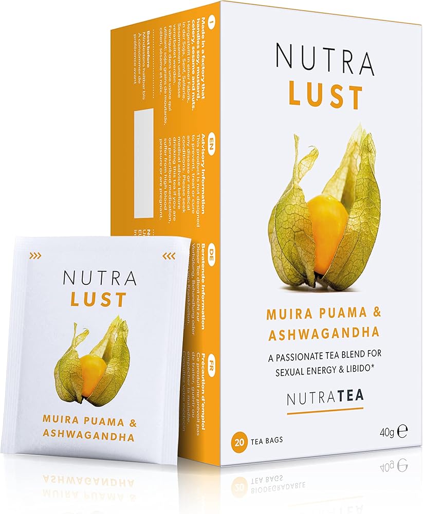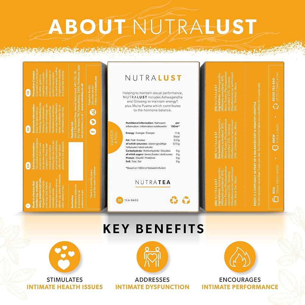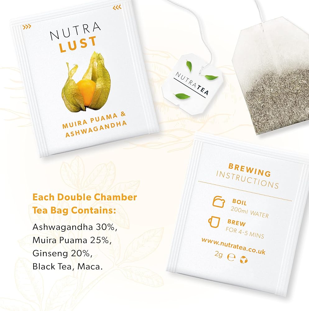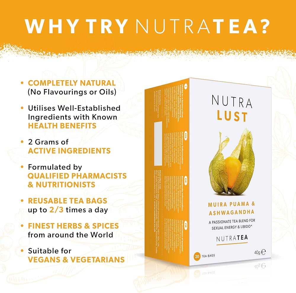 NutraLust - يساعد على تحسين العاطفة والقدرة على التحمل - يحتوي على أشواغاندا ومويرا بواما والجينسنغ - 20 كيس شاي مغلف - من NutraTea - شاي الأعشاب