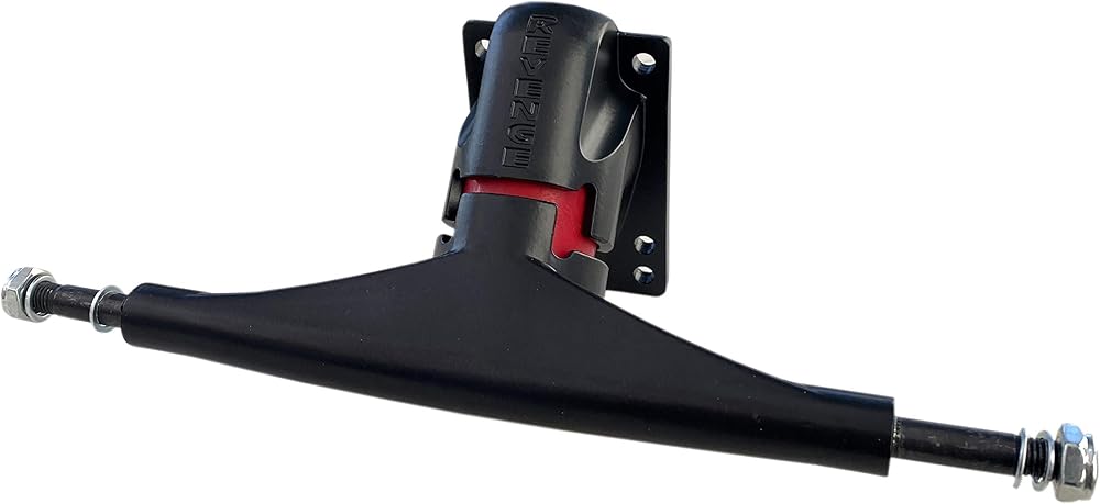 The Revenge Alpha II is a single pivot 45° torsion truck made of 8DC12 recycle-based lead free aluminum. They are designed for carving, sidewalk surfing and for the pure thrill of turning. They are not intended to replace your conventional trucks for the skatepark. Revenge trucks are too performance oriented for traditional transition-based skateboarding. The patented external locking mechanism allows for the tightest turns with no need for riser pads even with wheels up to 73mm, resulting in a full circle on a 47" board in less than 8 feet, all with no wheel bite! Turning has never been easier. They are mountable with standard hardware along with two options for hole patterns, old school and new school. The bushing is made from the highest quality high impact polyurethane, made in the USA.