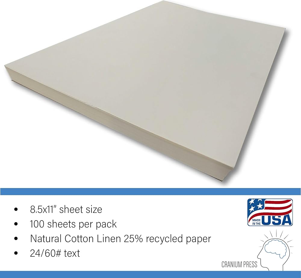 25% قطن معاد تدويره، ورق أعمال مقاس 8.5 × 11 بوصة، كتان عاجي طبيعي، 60 رطلاً. نص 100 الكمية