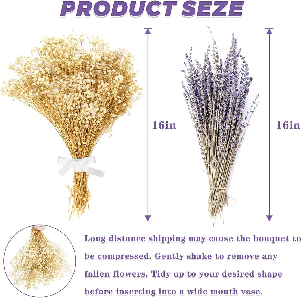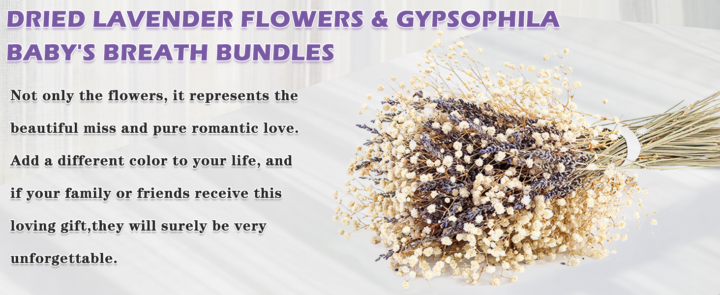 --يمكن استخدام زهرة اللافندر وزهرة أنفاس الأطفال المجففة في الأعمال اليدوية، مثل الأكاليل وحسابات اليد وبطاقات المعايدة وأغطية الرأس ، وديكورات إطارات الصور، وما إلى ذلك. يمكنك الحصول على الكثير من المرح من خلال الأعمال اليدوية. يجب على عائلتك أو أصدقائك ذلك كن سعيدًا جدًا لتلقي هذه الهدية المحبة.