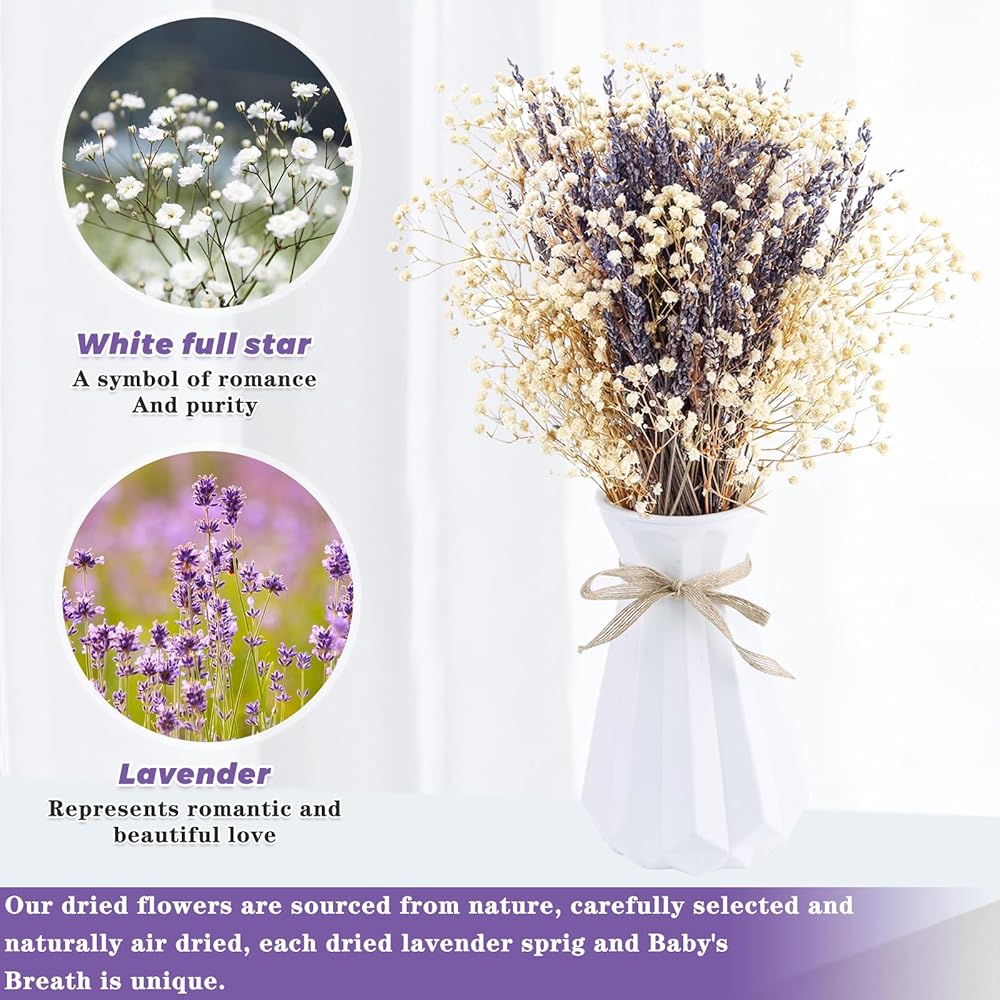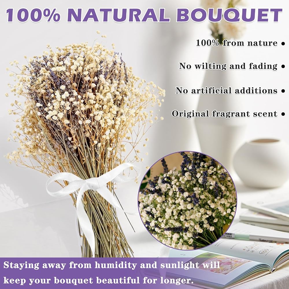 100% 𝑷𝑼𝑹𝑬 𝑵𝑨𝑻𝑼𝑹𝑨𝑳 -- غرسات طبيعية نقية، وزهور اللافندر المجففة وزهور أنفاس الأطفال الاصطناعية كلها منتقاة يدويًا، ومزروعة عضويًا، وخالية من الإضافات، وصديقة للبيئة، وتحتفظ بعطر الأزهار الأصلي. زهور أنفاس الأطفال لا تحتاج إلى الماء وأشعة الشمس ، ولن تذبل أبدًا.