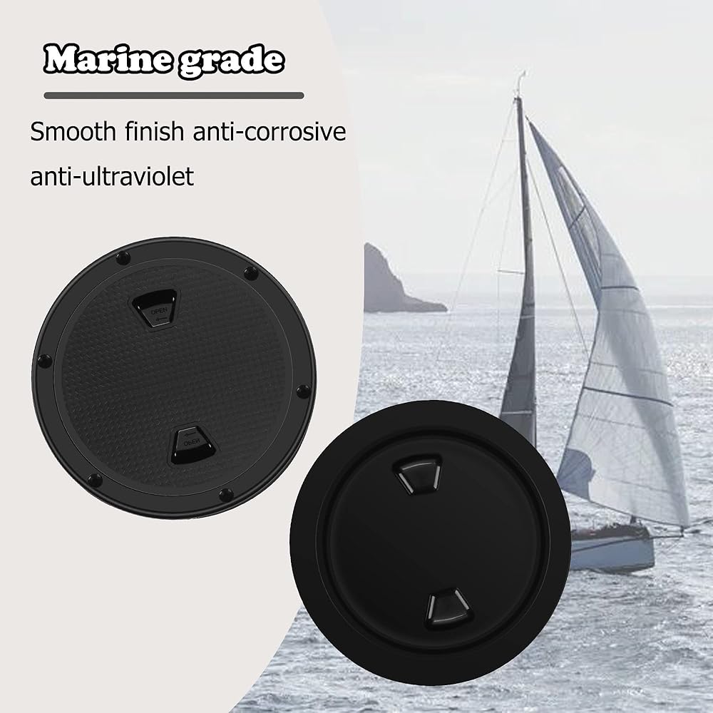 فتحة سطح القارب للوصول إلى فتحة غطاء سطح السفينة المستديرة مقاس 6 بوصات لوحة غطاء للوصول البحري، غطاء فتحة فحص دائري أسود غير قابل للانزلاق، غطاء قابل للفصل ليخت القوارب البحرية، وفتحات مقصورة القارب وألواح سطح السفينة للقوارب