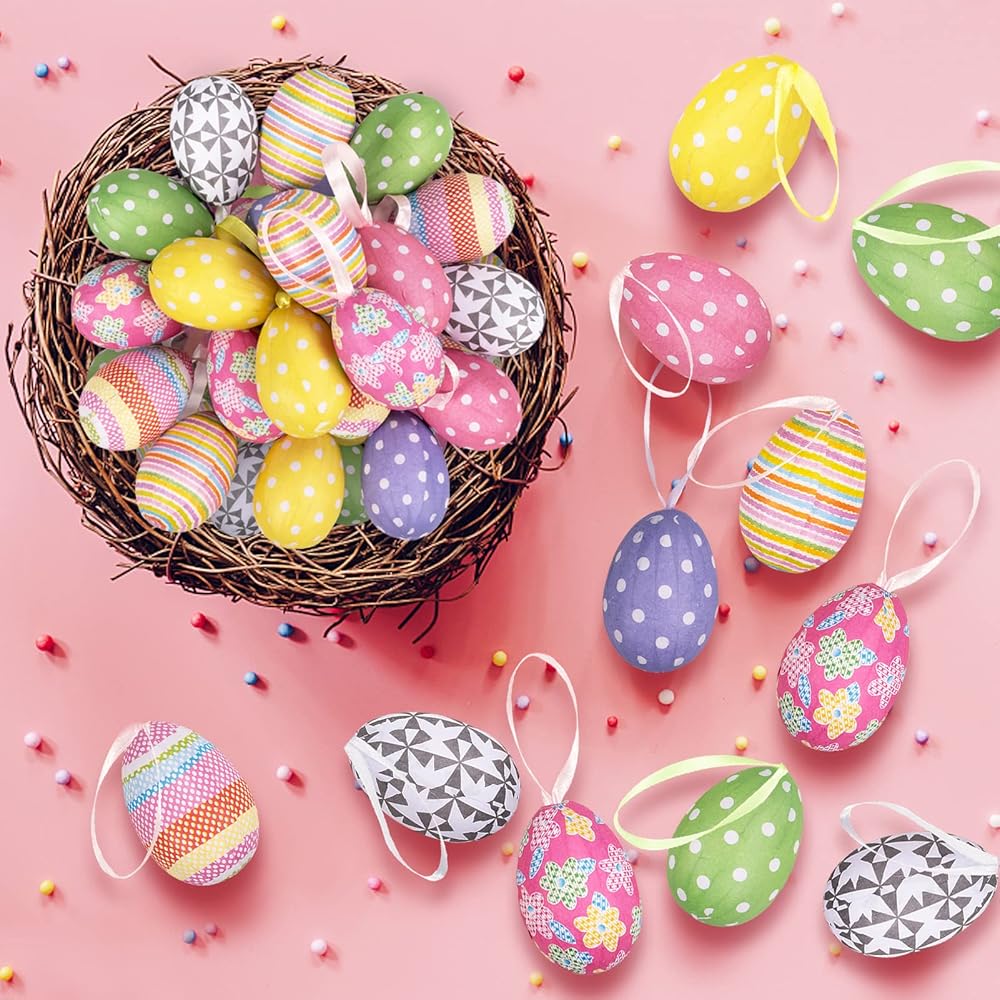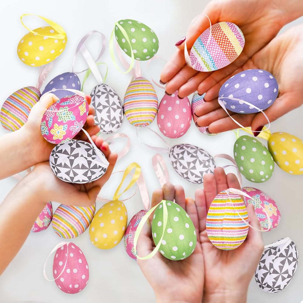بيض للحرف اليدوية: تأتي هذه البيضات الرائعة مع خيط للتعليق حتى تتمكن من ربطها بالعبوات والزجاجات وأغصان الزهور ووضعها في سلة عيد الفصح وما إلى ذلك، وقد تجد طرقًا مختلفة لتزيين ما تريد.