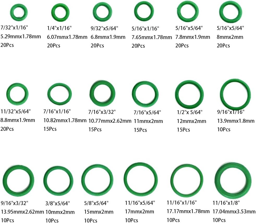 270 قطعة من المطاط الأخضر على شكل O-Ring NBR مجموعة سدادات غسالة 18 مقاسًا للسيارات AC O-Rings Kit حشية ختم للسيارات وآلات السباكة والأجهزة الكهربائية مع صندوق تخزين