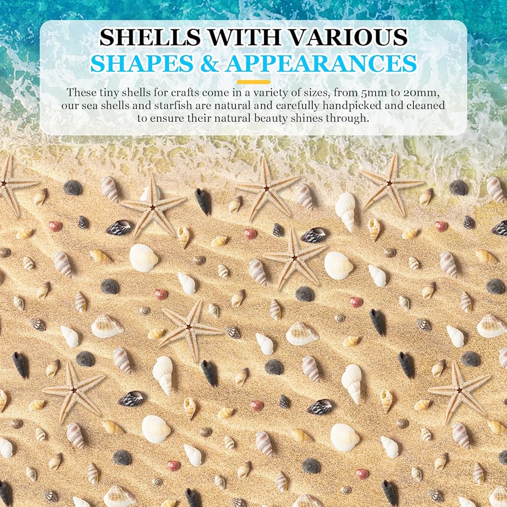 أكثر من 1000 قطعة من الأصداف البحرية الصغيرة ونجم البحر للحرف اليدوية وحشو المزهرية مزيج من الأصداف الطبيعية الصغيرة لديكورات المنزل وديكور الزفاف وصناعة الشموع وحفلات الشاطئ
