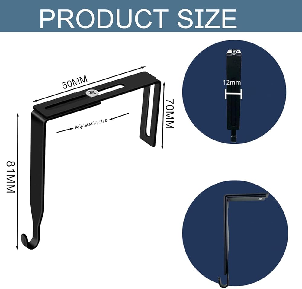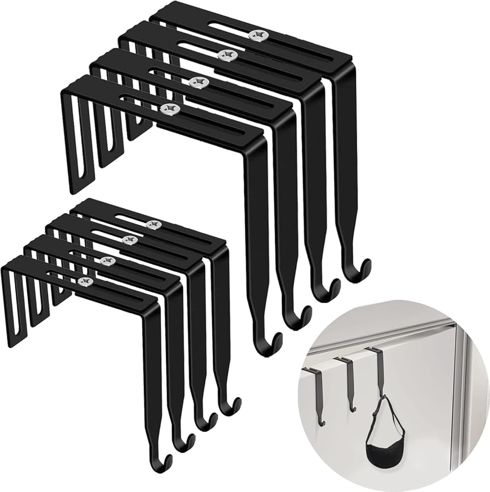 مجموعة شماعات تقسيم عالمية قابلة للتعديل، خطاطيف مرآة باب معدنية سوداء، تم تعديلها لتناسب الألواح بسُمك 1 3/8 بوصة إلى 3 1/2 بوصة للسبورة البيضاء للمكتب (8 عبوات)