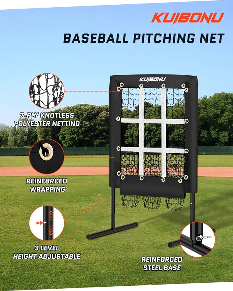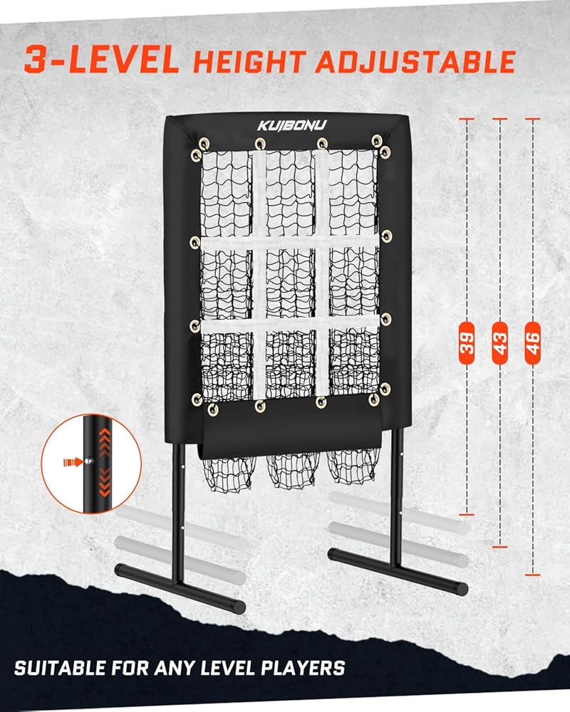 3 مستويات ارتفاع قابلة للتعديل: شبكة البيسبول KuiBonu تتميز بـ 3 مستويات ارتفاع قابلة للتعديل (39 بوصة - 45 بوصة). هدف الرمي هو أداة مساعدة رائعة في تدريب اللاعبين من جميع مستويات المهارة.