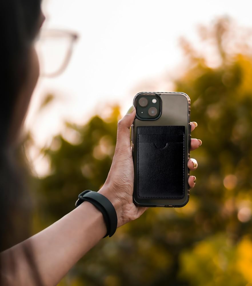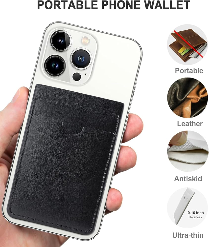 مادة جلدية مثالية: حامل بطاقة الائتمان هذا لجراب الهاتف مصنوع من جلد البولي يوريثان عالي الجودة. يتميز تصميم الجيب المزدوج فائق النحافة بمظهر فاخر وجزء داخلي غير قابل للانزلاق لحمل بطاقات الائتمان الخاصة بك بشكل آمن.