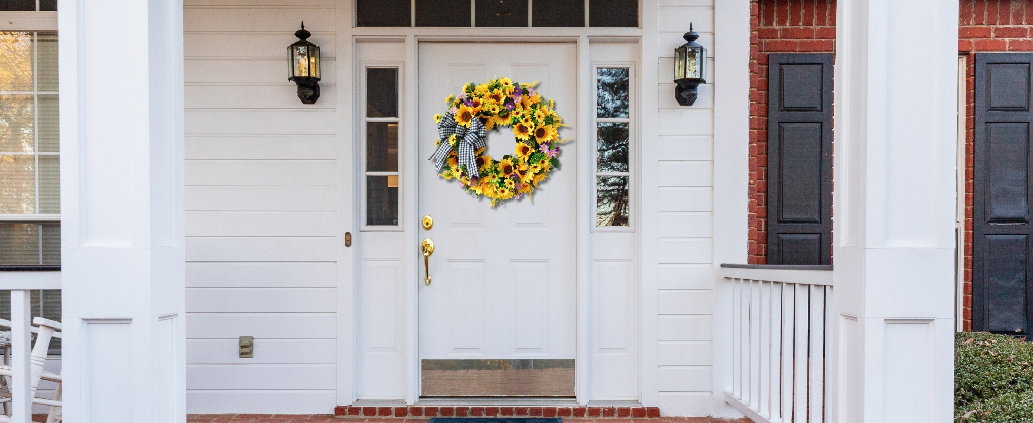 ديكور متعدد الوظائف: يمكن استخدام إكليل الباب الأمامي في الداخل والخارج، وهو ملحق زخرفي متعدد الاستخدامات. علقه على الباب الأمامي، وغرفة المعيشة، والمدفأة، والخزانة، والجدار، والنافذة، والرف وغيرها من الأماكن التي تريدها.