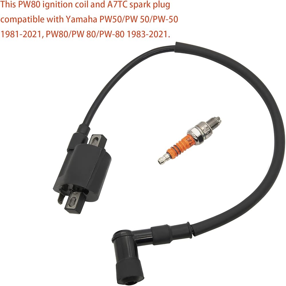This PW80 Ignition Coil and A7TC Spark Plug Compatible with Yamaha PW50 / PW 50 / PW-50 1981-2021, PW80 / PW80 / PW-80 1983 -2021.