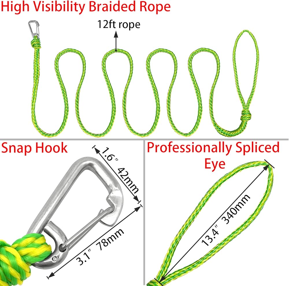 ISURE MARINE Kayak Tow Rope with Clip Dock Lines Heavy Duty Braided Line Ideal
