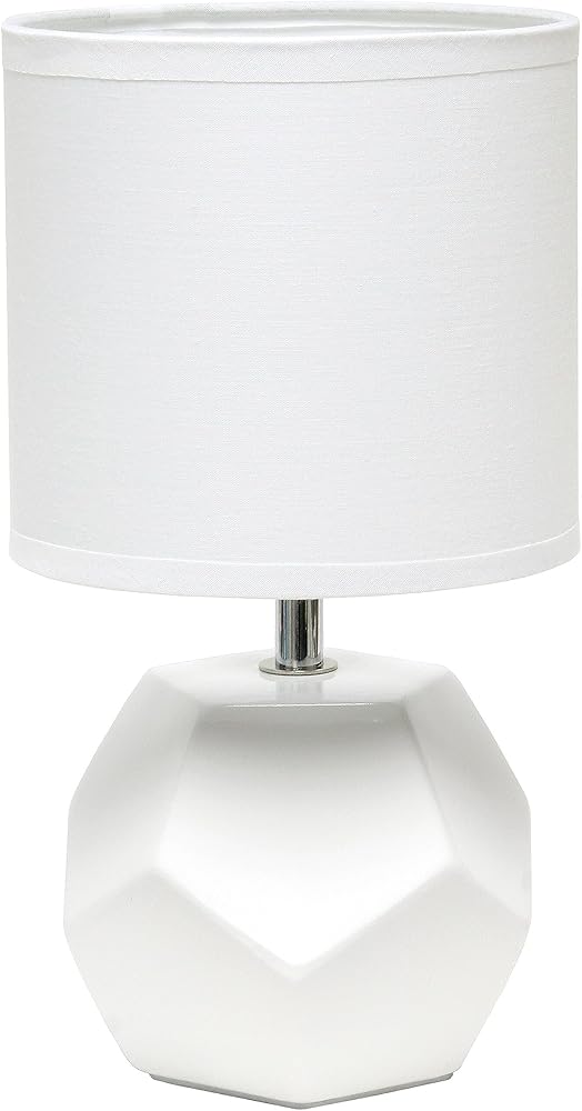 تصميمات بسيطة LF2000-WHT مصباح أرضي للأم والابنة مع ضوء للقراءة، أبيض وLT2065-WHT مصباح طاولة صغير منشوري مستدير مع غطاء قماش مطابق، أبيض