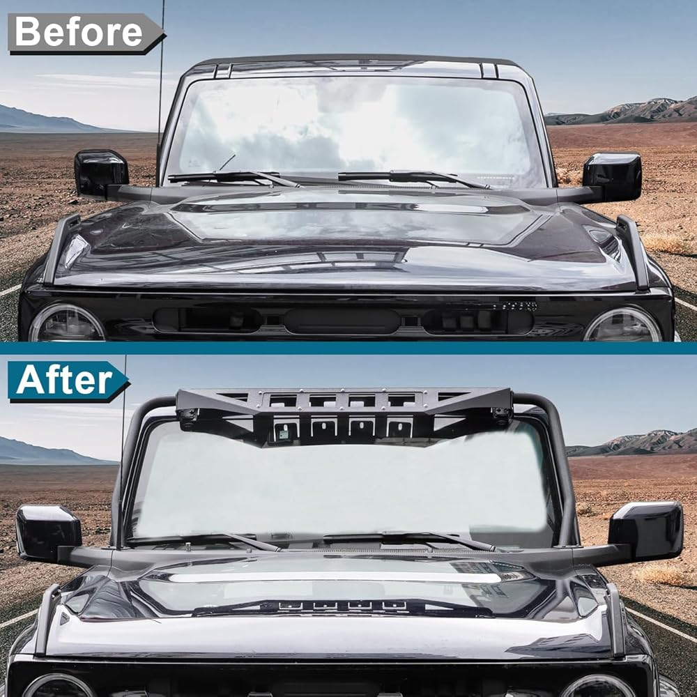 1. طقم درع غطاء إطار الزجاج الأمامي متوافق مع أبواب 2021 2022 2023 2024 Ford Bronco 2/4. (غير متوافق مع Bronco Sport).