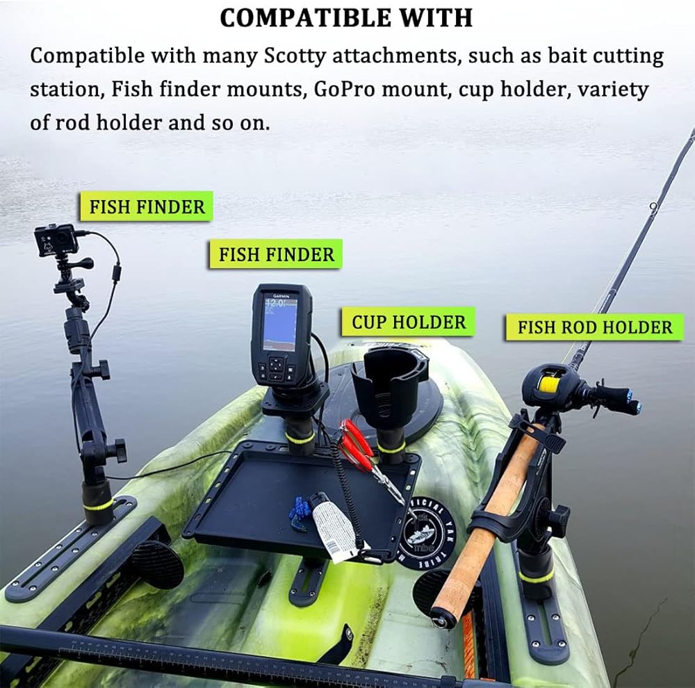 【ملاحظة: يتوافق محول مسار الكاياك هذا فقط مع معدات الصيد سكوتي، مثل حامل صنارة الصيد، ومكتشف الأسماك، وحوامل كاميرات الأسماك، وGoPro، وحامل الأكواب، والعلم الآمن، وما إلى ذلك.