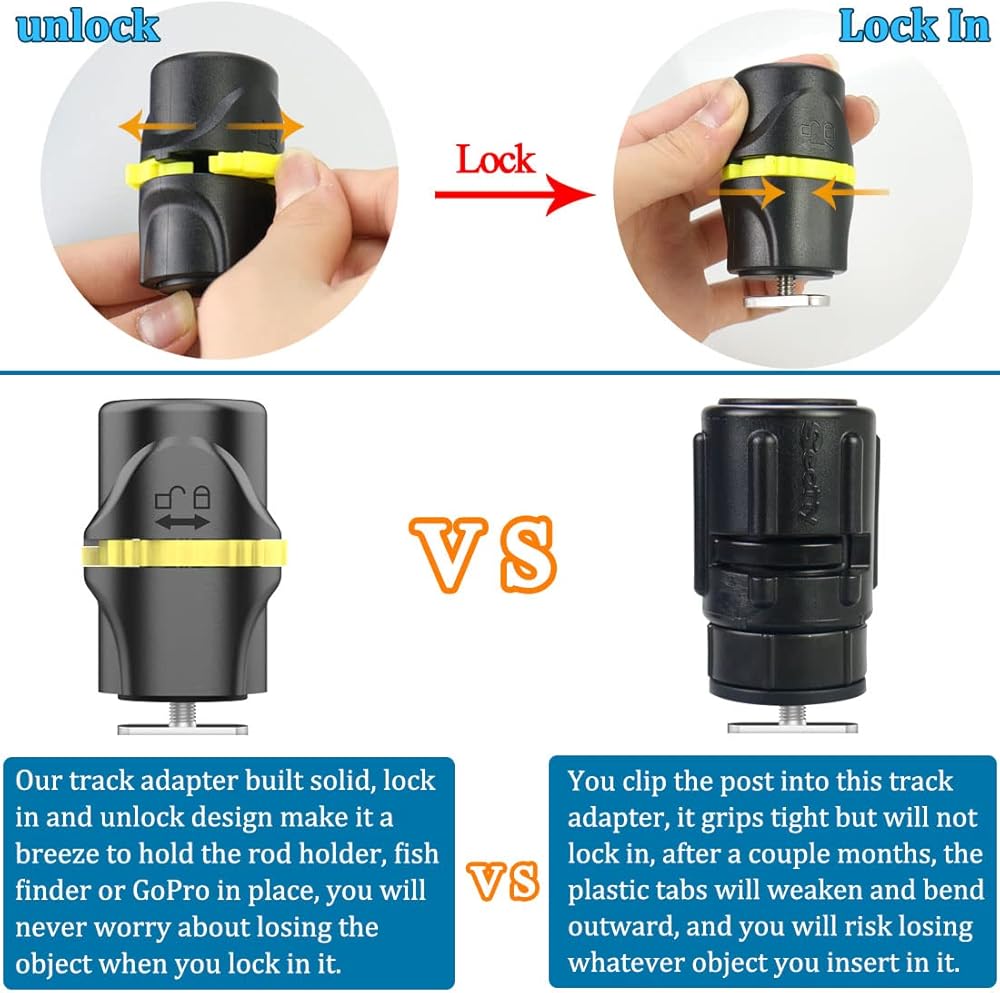 【المزايا مقارنة بالأشياء الأخرى】يمسك محول قضبان الكاياك الآخر بحامل القضيب أو مكتشف الأسماك بإحكام، ولكن لا يحبسه في مكانه، بعد شهرين، سوف ينفصل المشبك الذي يحمل حشوة التروس وستفقد معدات الصيد الخاصة بك. تم تصميم موصل مسار الكاياك الخاص بنا للقفل والفتح لتثبيت معدات الصيد في مكانها، ولن تفقد معدات الصيد الخاصة بك أبدًا.