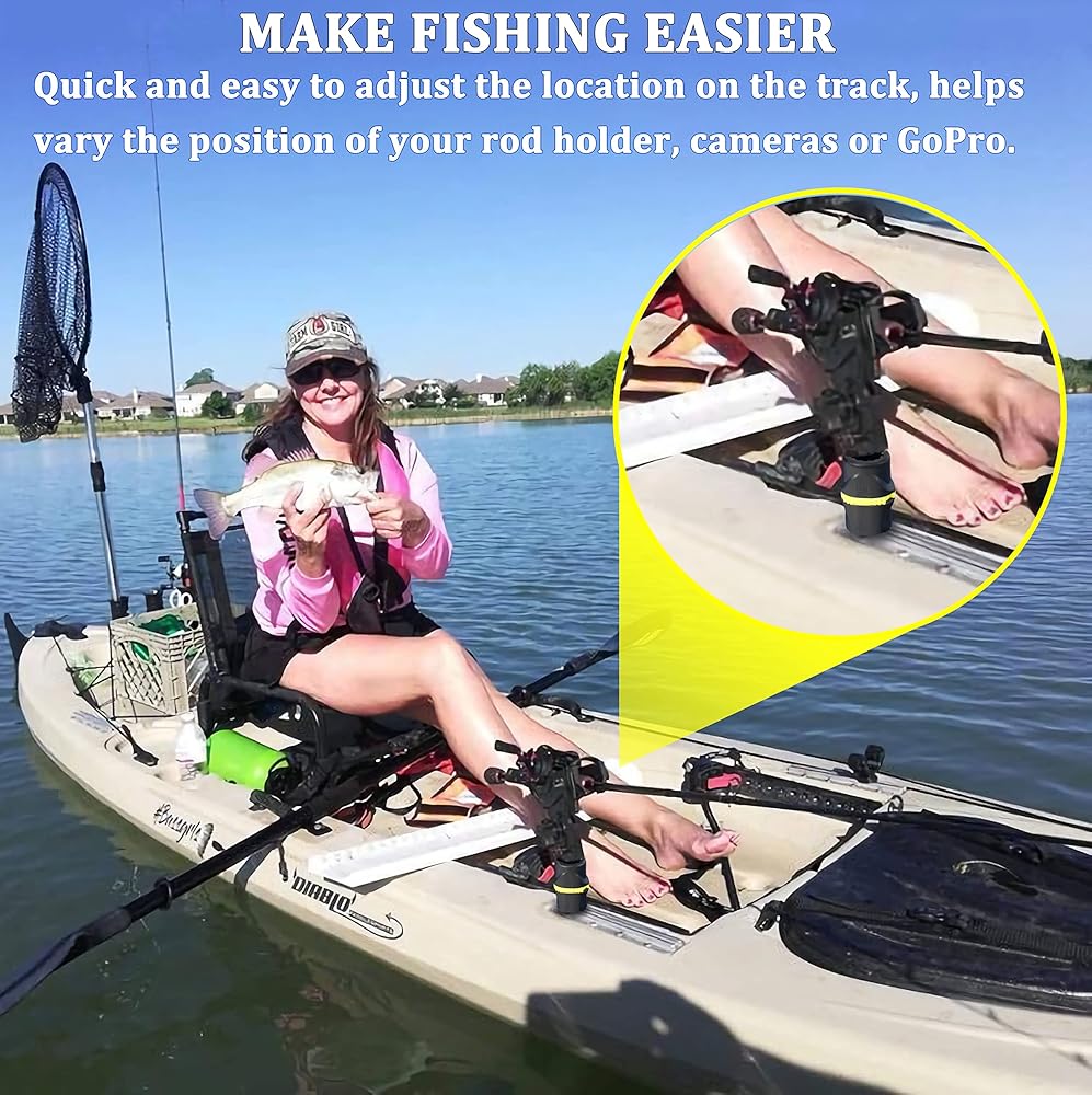 【يجب اقتناؤه لمسار الكاياك】يناسب معظم قضبان الكاياك القياسية ويسمح لك بتعديل موضع حامل القضيب ومكتشف الأسماك وGoPro بسرعة في مسار الكاياك. يتم قفل هذه الوحدة عند القاعدة ولا تزال قادرة على التحريك من الجزء العلوي للوحدة؛ يتيح لك ذلك تأرجح الكاميرات وقضبان الصيد دون أن ترتخي القاعدة.