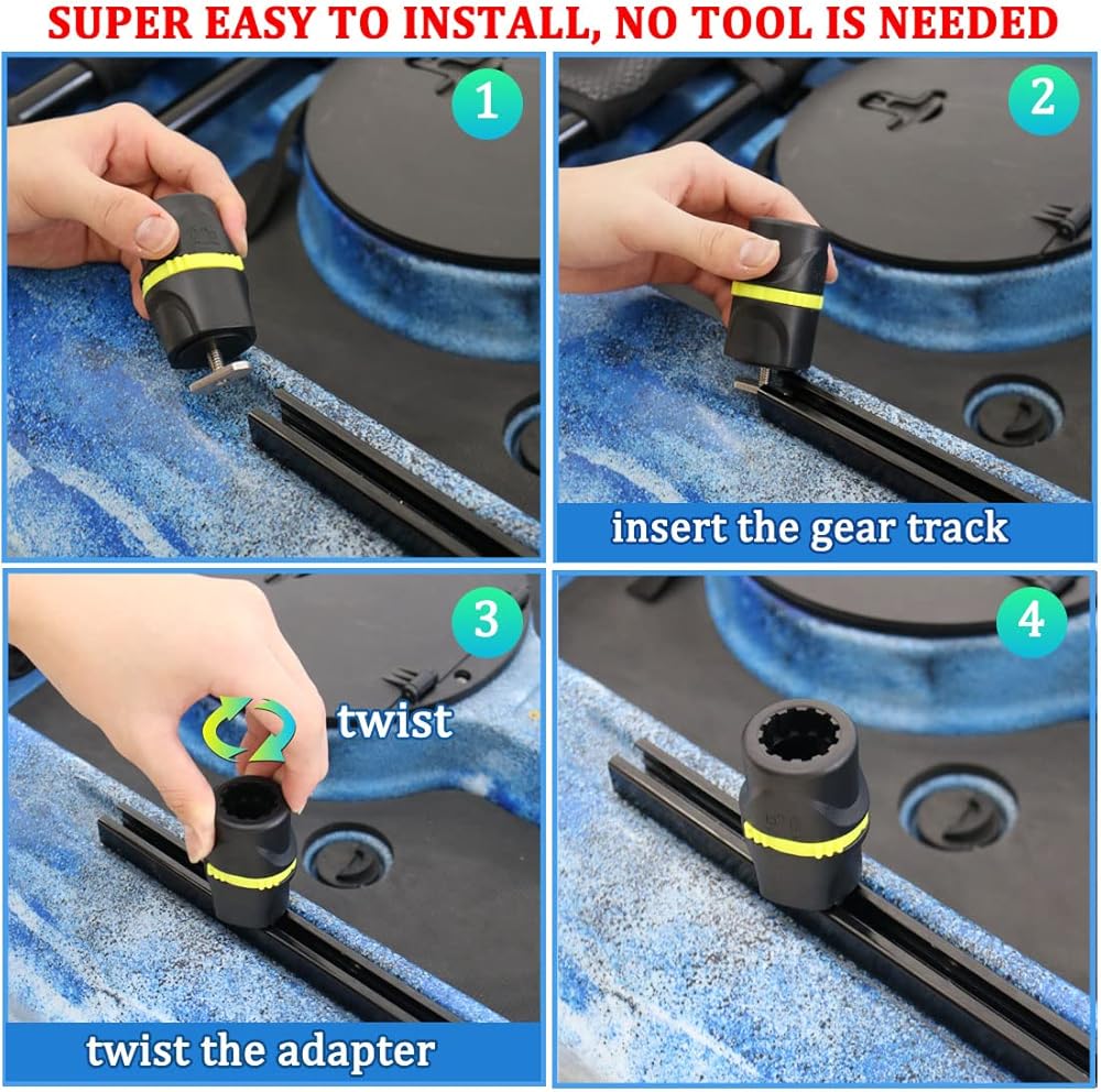 【سهلة التركيب بشكل واضح】لا حاجة إلى الحفر، ببساطة قم بإدخال محول مسار الكاياك إلى قضيب الكاياك، ثم قم بلف المحول حتى يصبح مشدودًا، ويستغرق التثبيت في غضون 20 ثانية.
