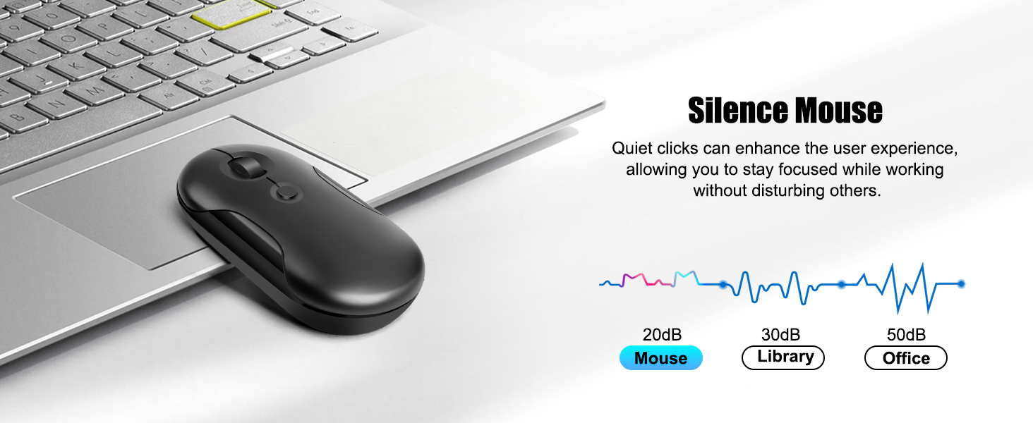 ماوس النقر بدون ضوضاء - يسهل التصميم المحمول التخزين المريح في الحقيبة أثناء سفر العمل، بينما توفر الأزرار سريعة الاستجابة نقرة لطيفة بأقل قدر من الضوضاء، مما يزيل أي إزعاج ناتج عن أصوات النقر العالية للآخرين.