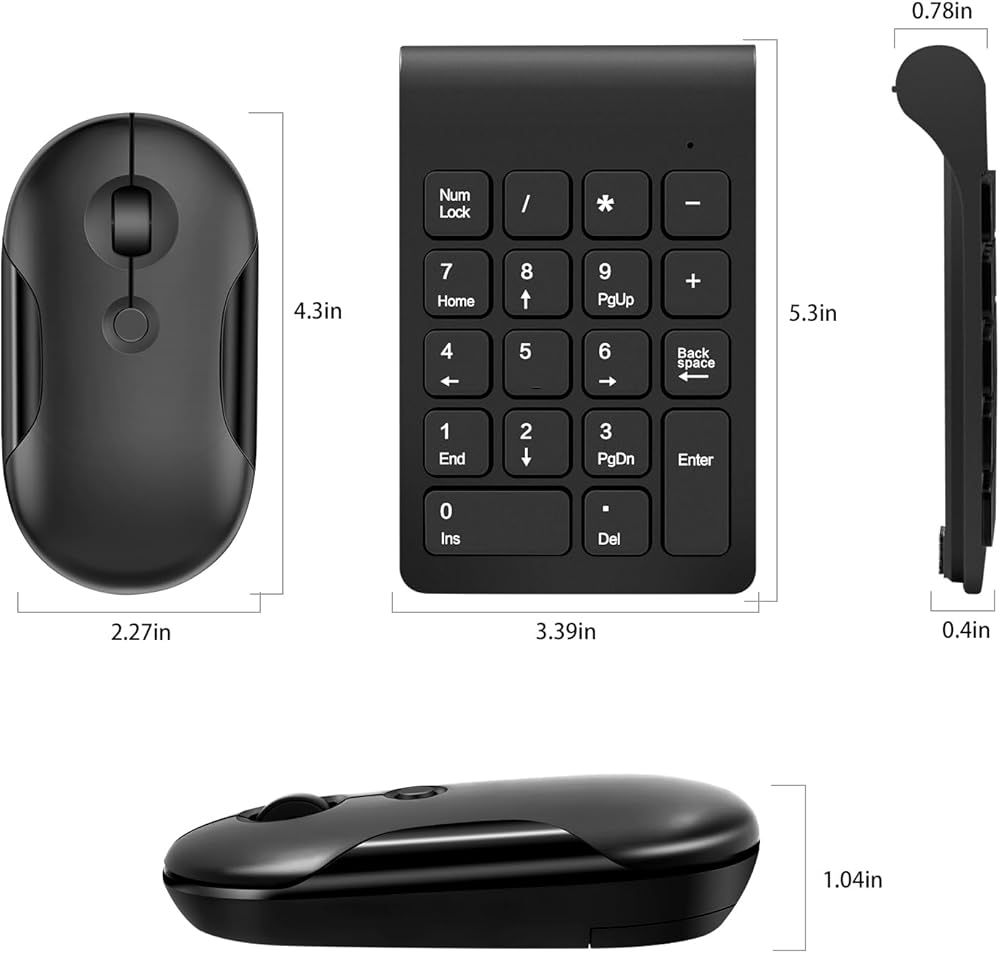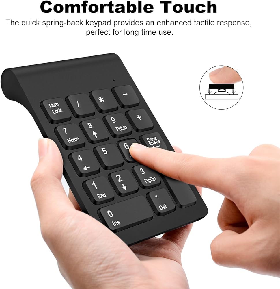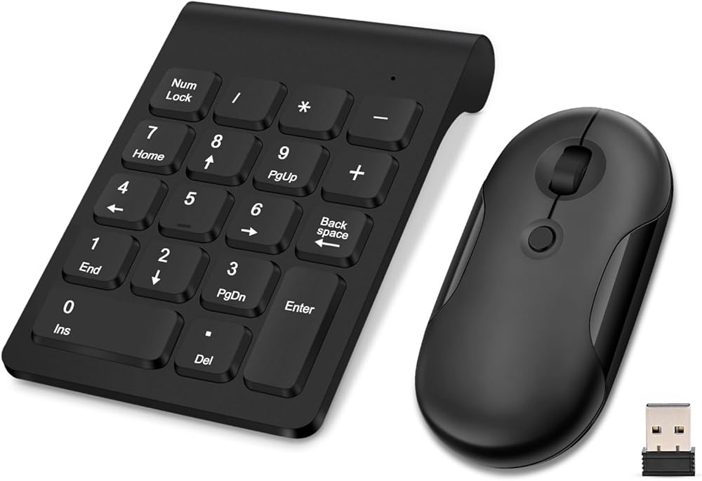 مجموعة لوحة مفاتيح وماوس رقمية لاسلكية من TRELC، لوحة أرقام صغيرة 2.4G 18 مفتاحًا مع ماوس صامت، ملحقات لوحة المفاتيح Numpad لإدخال بيانات المحاسبة المالية لأجهزة الكمبيوتر المحمول والكمبيوتر الشخصي وسطح المكتب والكمبيوتر المحمول (أسود)