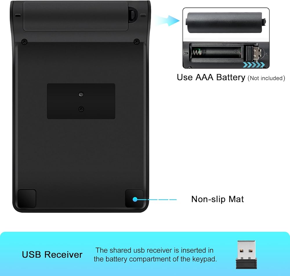 تصميم مضاد للانزلاق ومحمول - تتميز لوحة المفاتيح الرقمية بأربع سجادات غير قابلة للانزلاق على ظهرها، مما يضمن الثبات ويمنع أي حركة غير مرغوب فيها أثناء الاستخدام. لوحة الأرقام المتينة هذه قابلة للحمل بشكل مريح، مما يسمح لك بالعمل بثقة وكفاءة أينما ذهبت.