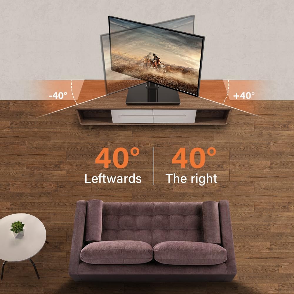 Multi-angle adjustment TV stand offers ±45° swivel, and 4 level height adjustment