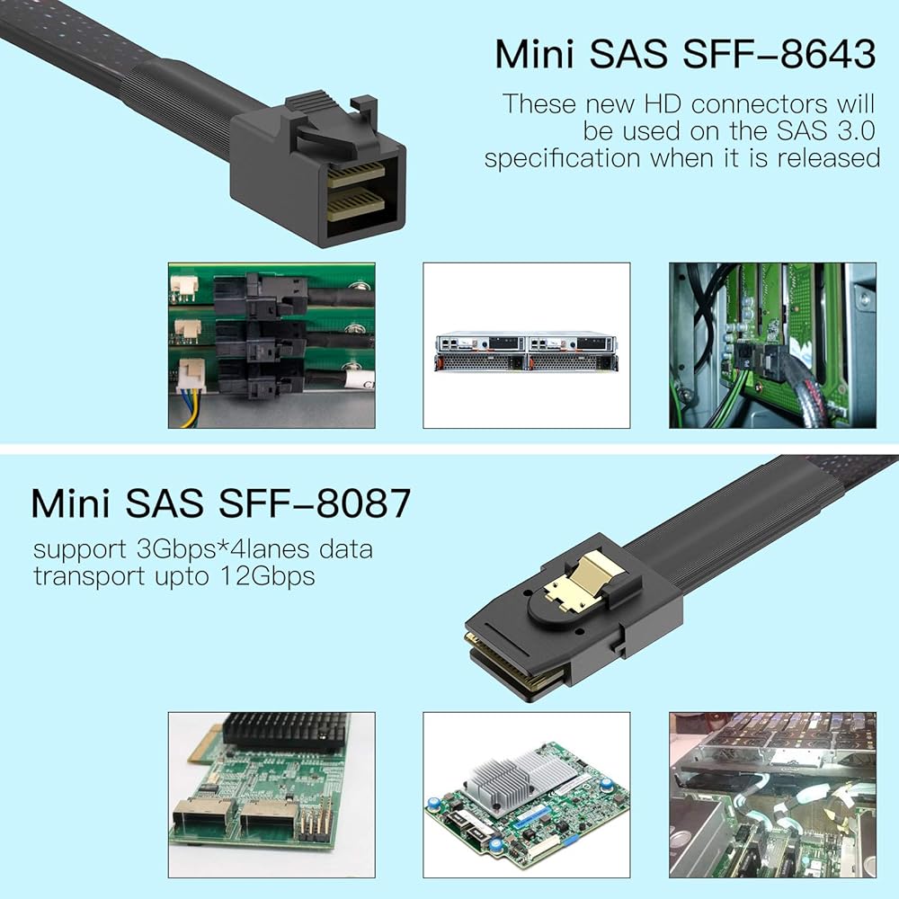 - Mini SAS SFF-8643 to SFF-8087 Cable is a new generation of high density interface,wider bandwidth ,larger capacity and faster data transition.