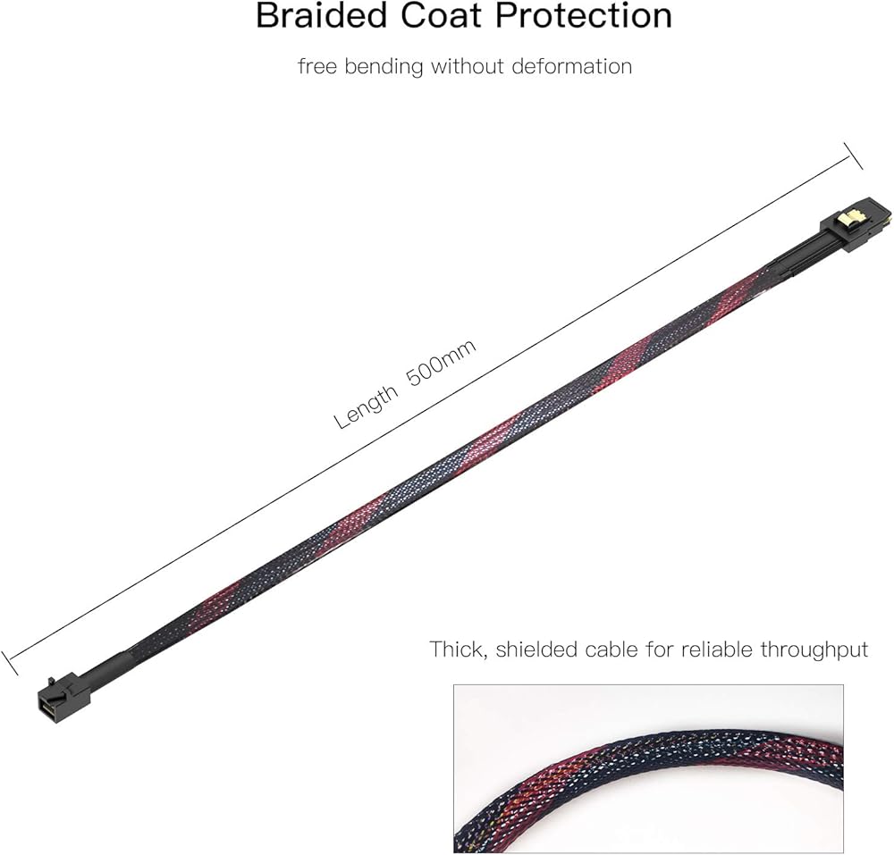كابل Mini SAS HD، كابل Mini SAS HD داخلي، 1.6 قدم SFF-8643 إلى Mini SAS 36Pin SFF-8087، Mini SAS 36Pin إلى SFF-8643 كابل كابل نقل سريع للبيانات