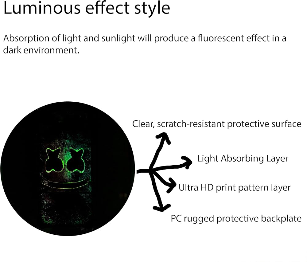 The back side is a combination of 4 layers: solid PC, ultra-high definition pattern layer, special process layer, clear and scratch-resistant surface layer