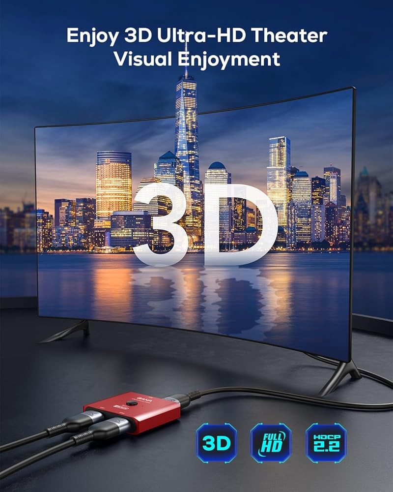 【نقل سريع ومستقر】 يوفر لك مفتاح HDMI المصنوع من الألومنيوم معدلات نقل عالية الوضوح تصل إلى 48 جيجابت في الثانية بعرض النطاق الترددي الكامل. يتطلب استخدام دقة 8K ومعدلات التحديث العالية استخدام كابلات HDMI 2.1 لتوصيل الأجهزة. موصلات مطلية بالذهب تقاوم التآكل وتضمن نقل إشارة الصوت والفيديو من الدرجة الأولى. يضمن غطاء سبائك الألومنيوم الاستخدام الدائم وتبديد الحرارة.