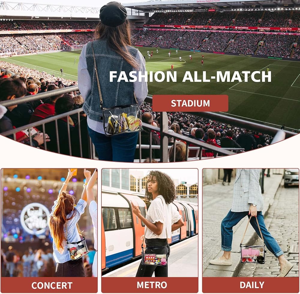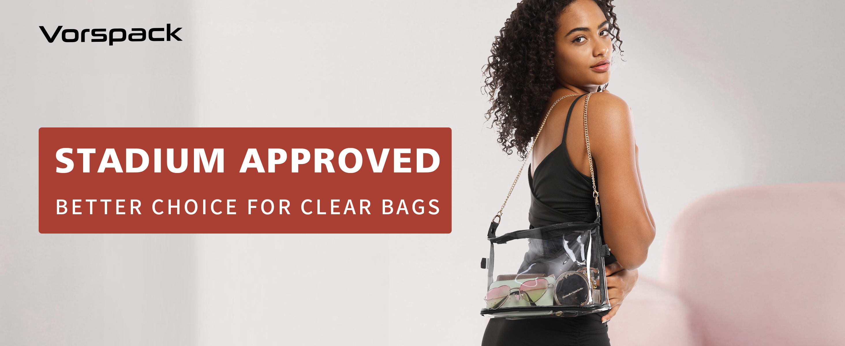 تمت الموافقة على استاد الحقائب الشفافة: يبلغ حجم حقائبنا الشفافة للسيدات 9.4 × 3.9 × 7.1 بوصة وتتوافق مع سياسة حقائب الاستاد. مع محفظة Vorspack الشفافة للملعب، يمكنك اجتياز فحص الأمان بسرعة في الملاعب والحفلات الموسيقية وفي أي مكان آخر