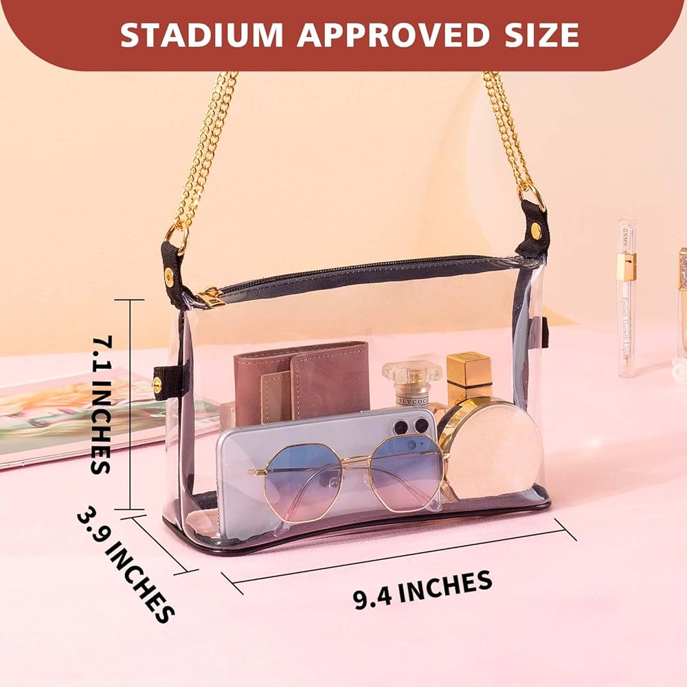 متعددة الأغراض لمختلف المناسبات: تعتبر حقائب الاستاد الشفافة للسيدات مثالية لأي موقف يتطلب سياسة حقيبة شفافة، مثل ألعاب كرة القدم أو المهرجانات الموسيقية أو الحفلات الموسيقية أو الأماكن. أو فقط احملها للاستخدام اليومي مثل حفلات الزفاف والحفلات الراقصة والتخرج. يمكن أيضًا أن تكون حقائب الجسم الشفافة للنساء هدية رائعة لأصدقائك
