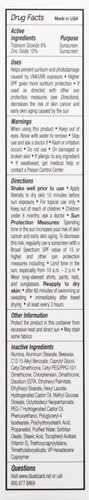 • حماية واسعة الطيف من الأشعة فوق البنفسجية فئة A وB - المكونات النشطة المعدنية أكسيد الزنك وثاني أكسيد التيتانيوم توفر حماية واسعة الطيف ضد الأشعة فوق البنفسجية فئة A وB