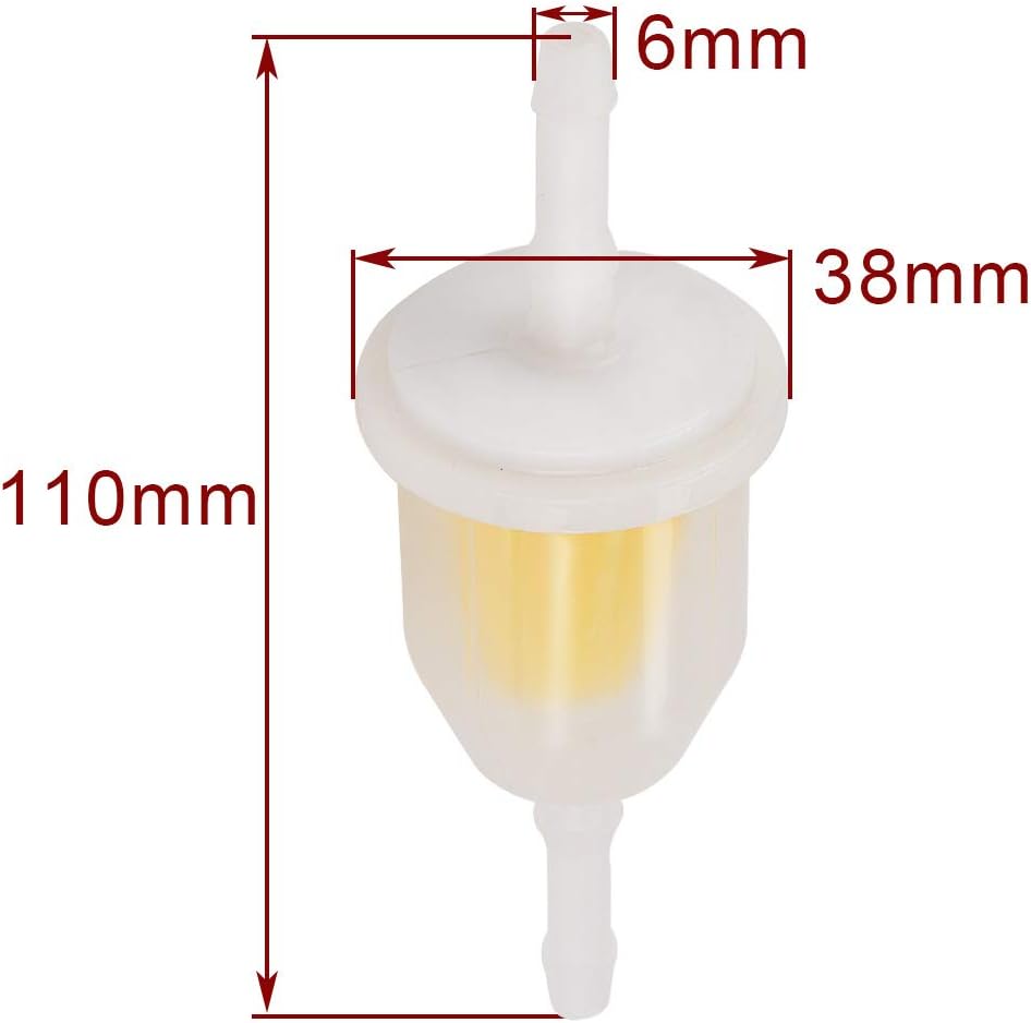 • ▶Fuel Filters【High Quality Fuel Filters】Inline Gas Fuel Filter for 6mm & 8mm 1/4" & 5/16" internal diameter pipe. Please check the machine model number and part number before purchase to ensure that the purchased parts are suitable for your equipment.