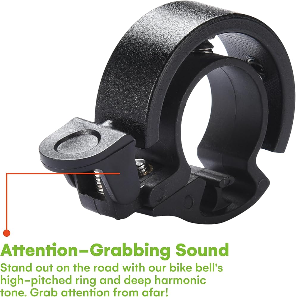 حلقة عالية النبرة مع نغمة متناغمة عميقة - تميز على الطريق بصوت جرس الدراجة الفريد الخاص بنا. تقطع الحلقة عالية النبرة ضوضاء المرور، وتجذب الانتباه من بعيد.