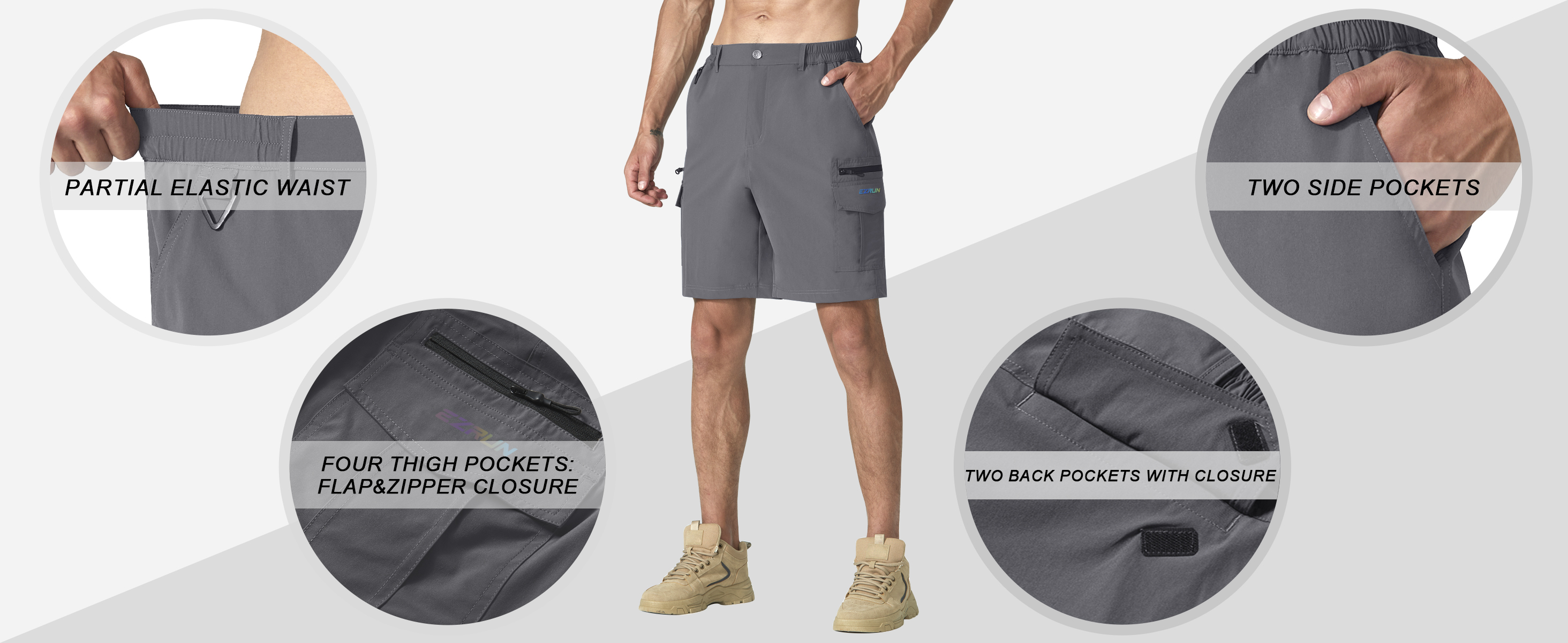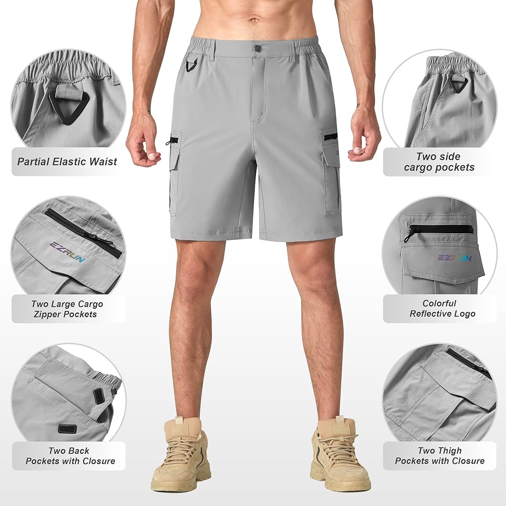 خصر مطاطي جزئي: شورت كارجو رجالي بخصر مطاطي جزئي لمنع علامات الضغط على البطن ويوفر ملاءمة مخصصة أثناء العمل أو ممارسة الرياضة.