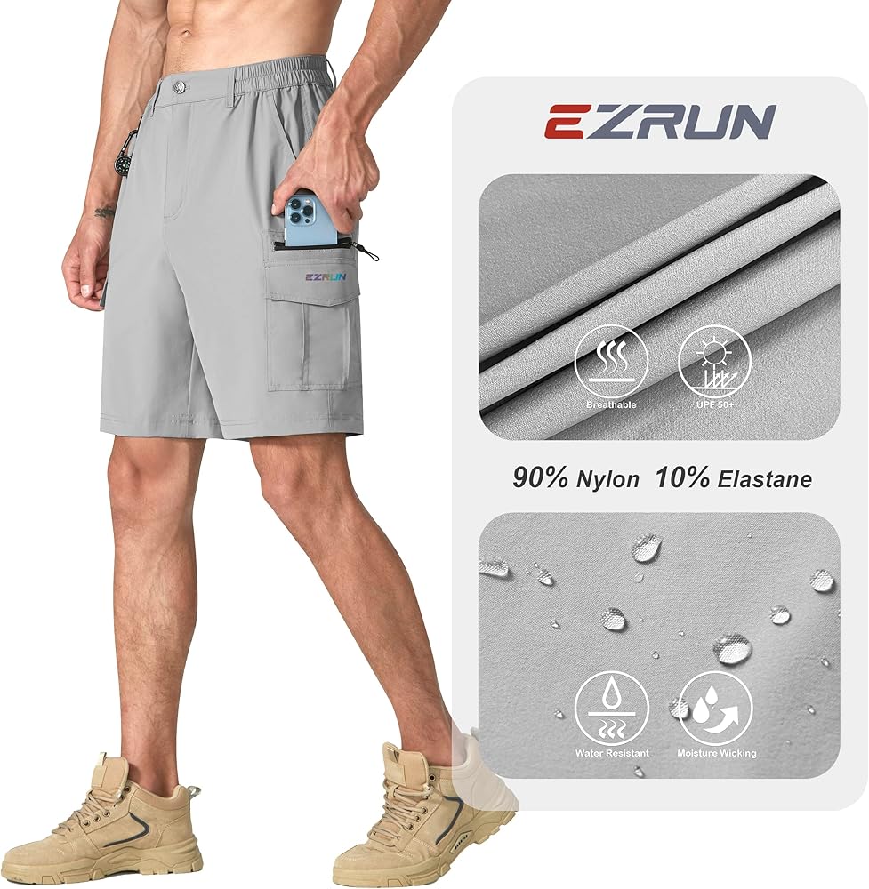 مقاوم للماء وحماية من الشمس: شورت خفيف الوزن للرجال مصنوع من نسيج ماص للرطوبة تمت معالجته بمادة طاردة للماء متينة (DWR) للتخلص من المطر الخفيف والبقع. ومصنوع من قماش منسوج مطاطي ومزود بعامل حماية من الأشعة فوق البنفسجية 50+ لتوفير حماية كبيرة ضد الأشعة فوق البنفسجية الضارة في الظروف الخارجية.