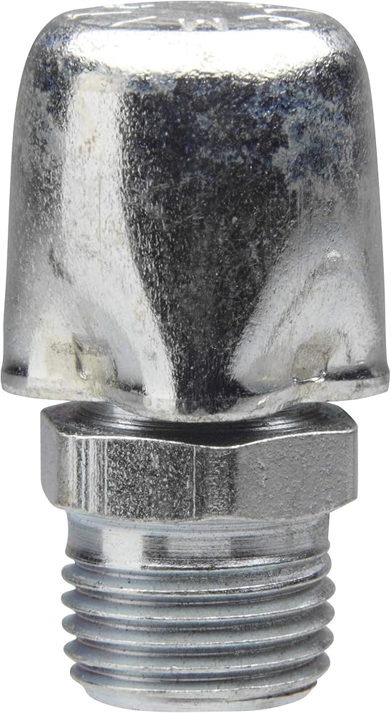 Alemite 304810 is a straight air vent 1/8 in. Ptf SAE Spl short grease fitting with an overall Length of 1 in. And shank length of 0.19 in. It exceeds the 72 hour salt spray test. The vent opens at 1-3 in. Water pressure (1 in. Of water = 0.03613 psi) and features a special steel cap that prevents water or dirt from entering the grease fitting. The vent's trivalent clear zinc plating protects against corrosion. The use of this fitting helps prevent fluid leakage. Alemite vents are used with transmissions, speed reducers, axles, gear housings and other similar applications. The vent is placed above normal lubrication level to allow air to escape when internal pressure rises. As the inventor of the Zerk fitting, Alemite is a recognized global leader in supplying fittings for automotive and industrial use. Alemite fittings conform to SAE J534 standards for automotive OEM use and Alemite Manufacturing is TS/ISO 16949 certified.