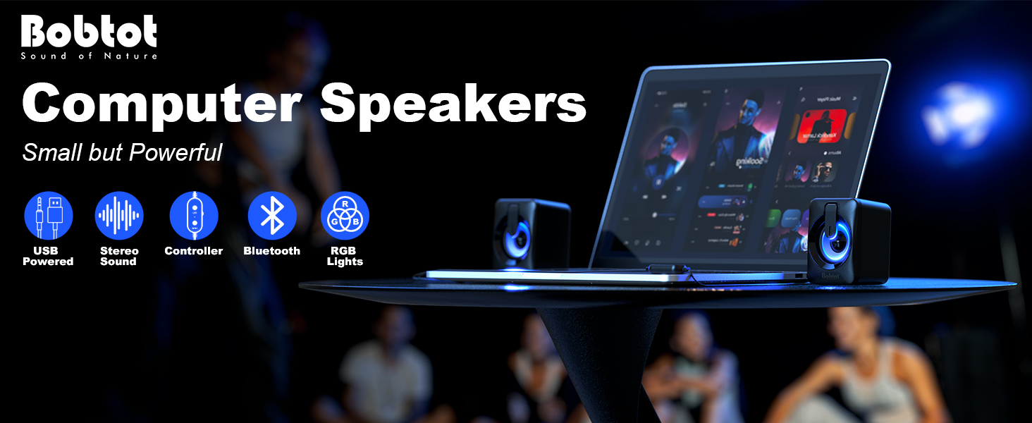 【جودة صوت ستيريو】مكبر صوت كمبيوتر Bobtot مزود بوحدة محرك مزدوج كبيرة 3 وات*2، وإخراج يصل إلى 6 وات، يمكنك الاستمتاع بأجواء الصوت المحيطي بسهولة. تعد جودة الصوت الرائعة لمكبر الصوت مثالية للموسيقى والأفلام والألعاب.