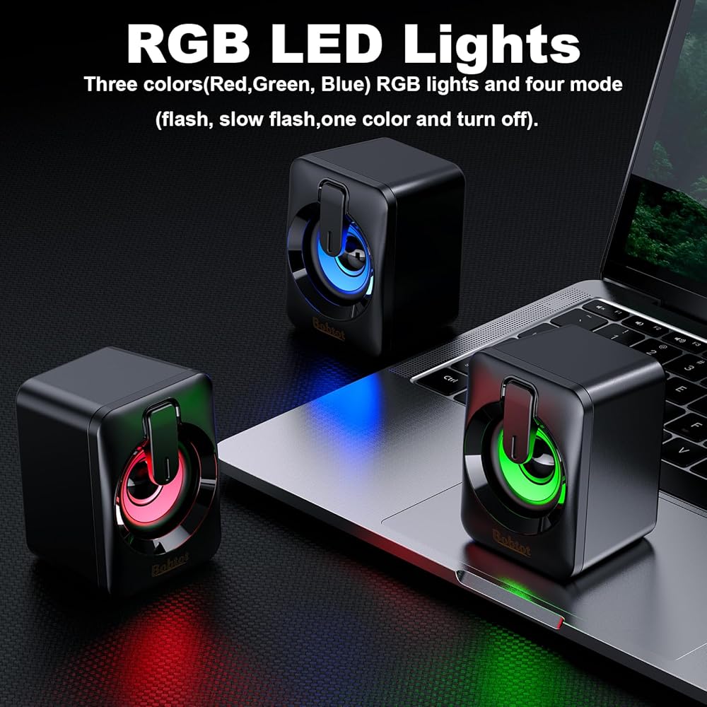 مكبر صوت كمبيوتر يعمل بمنفذ USB - مضخم صوت بلوتوث صغير محمول 2.0 مع أضواء RGB وتحكم في مستوى الصوت 3.5 ملم AUX-in نظام صوت ستيريو HiFi لأجهزة الكمبيوتر المحمولة والهواتف اللوحية