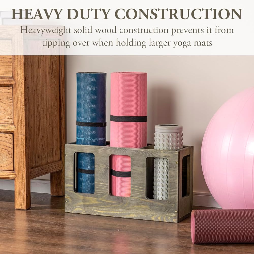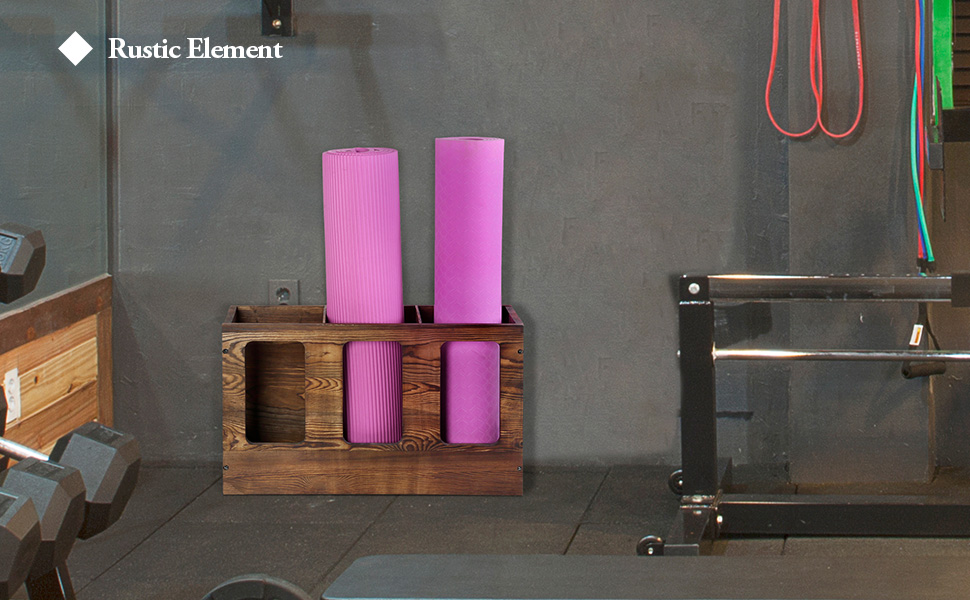Vintage dark brown wood gym sports equipment holder perfect for organizing foam rollers or yoga mats in your home gym or fitness center **Some assembly required**