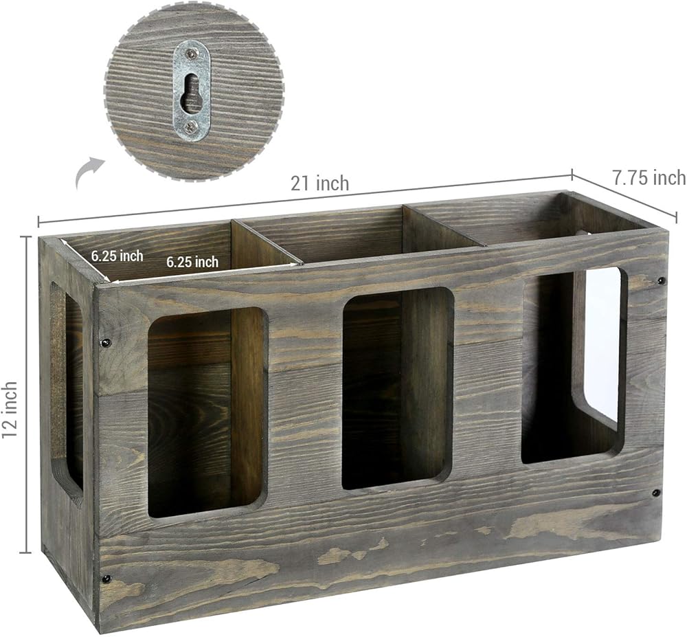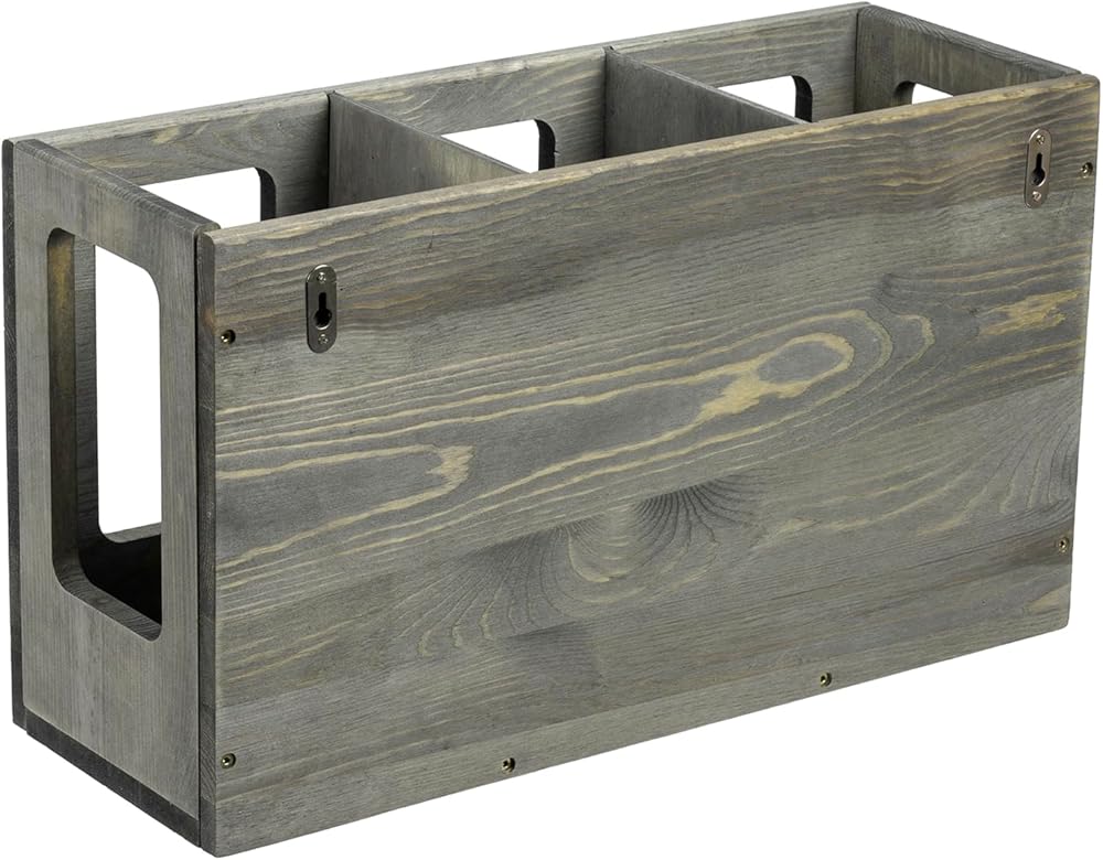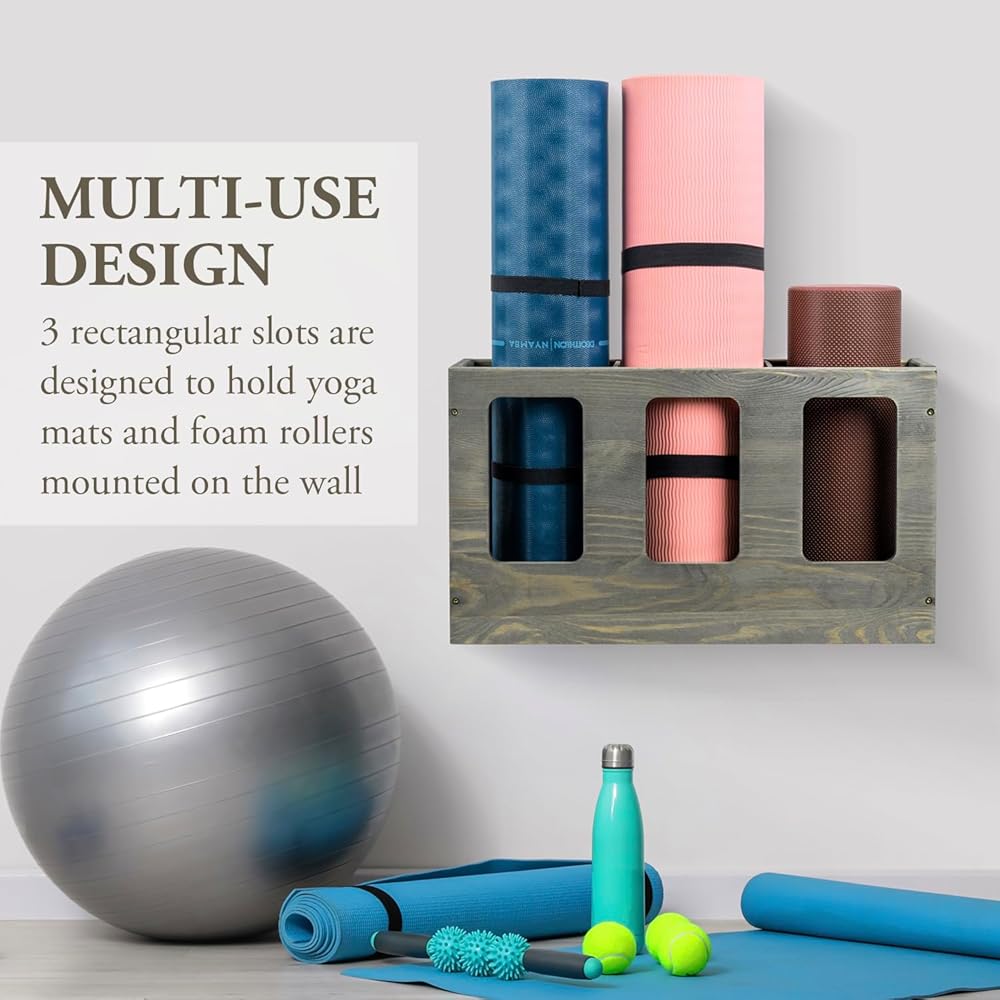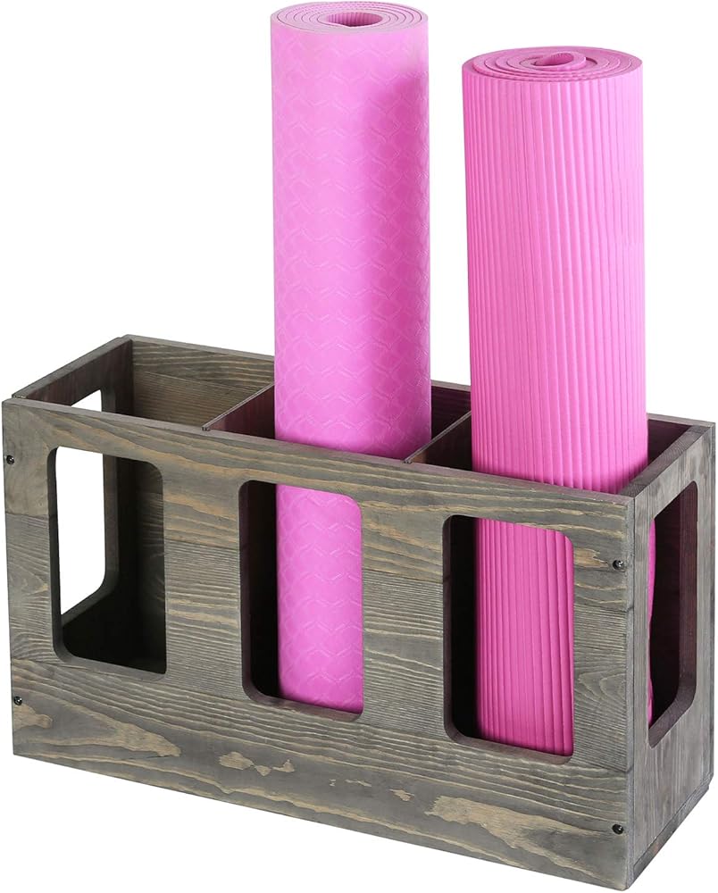 Keep your foam rollers easily accessible and add a touch of country style to your home gym or fitness center with this vintage gray wood storage rack. Whether mounted to flat wall surfaces with proper hardware (Mounting hardware not included) or displayed on the floor, this foam roller organizer rack provides 3 compartments for storing foam rollers, yoga mats or even towels up to 6.25 inches in diameter and features open panels on the sides for an optimal view of their contents, creating a stylish storage solution for all your fitness equipment.