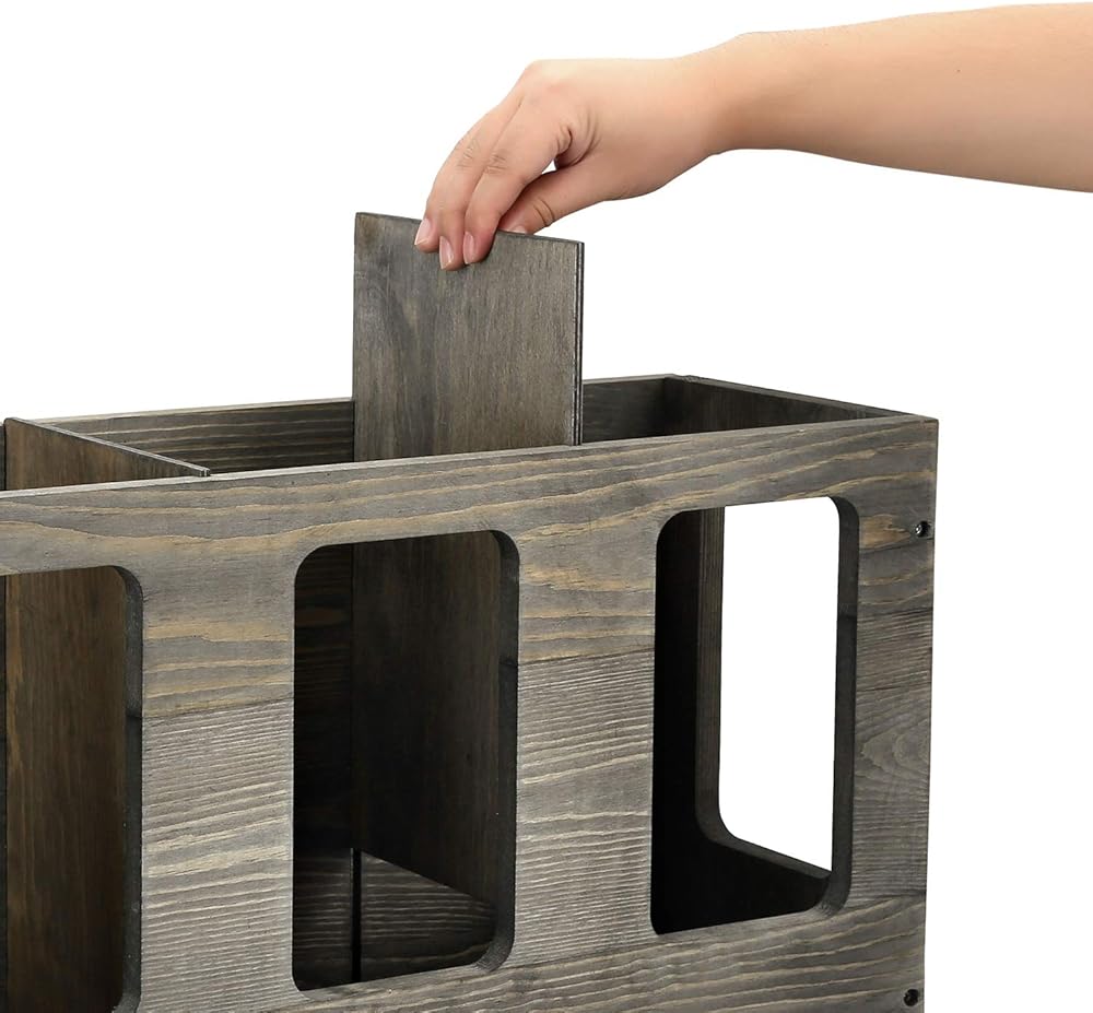 Dark brown wood construction seamlessly blends with rustic and contemporary decors for added stylish storage and convenient accessibility