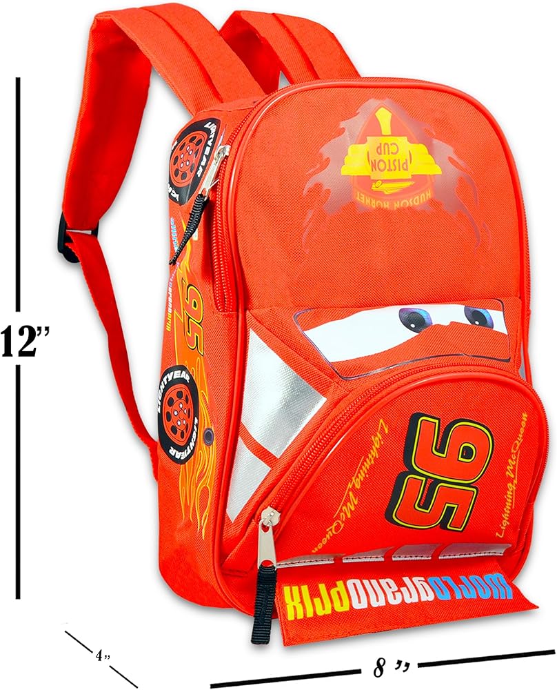 • حقيبة ظهر ديزني كارز مع صندوق غداء للأطفال الصغار في مرحلة ما قبل المدرسة والأولاد والبنات - حزمة حقيبة ظهر صغيرة مقاس 12 بوصة مع صندوق غداء وملصقات.