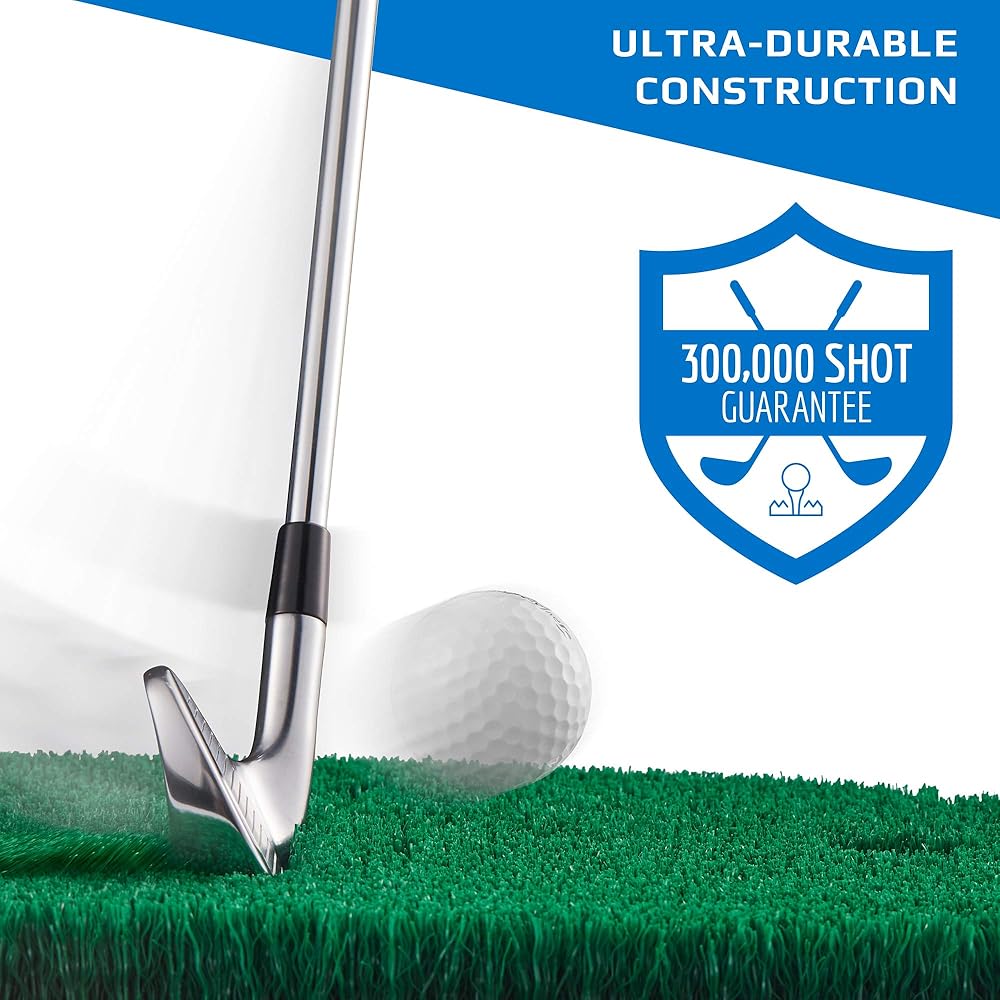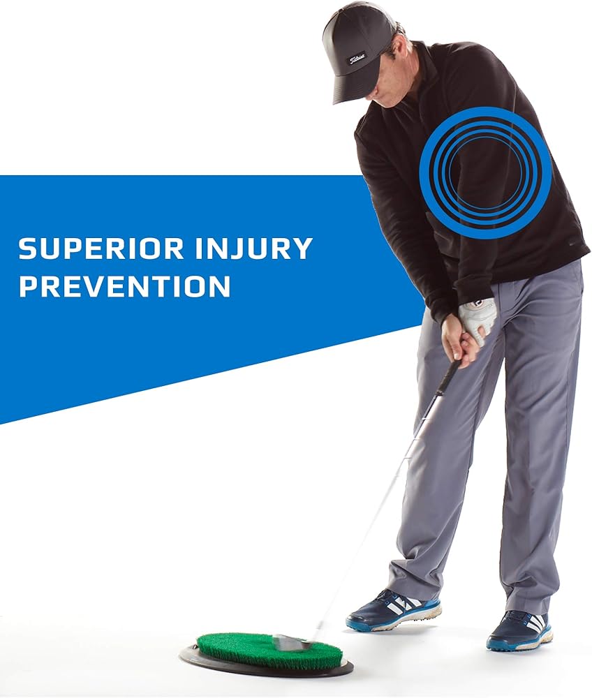 Injury prevention: The proprietary fiber technology and golf hitting mat design allows for hitting down and through the ball to avoid turf shock injuries to hands, wrists, elbows, arms, and shoulders
