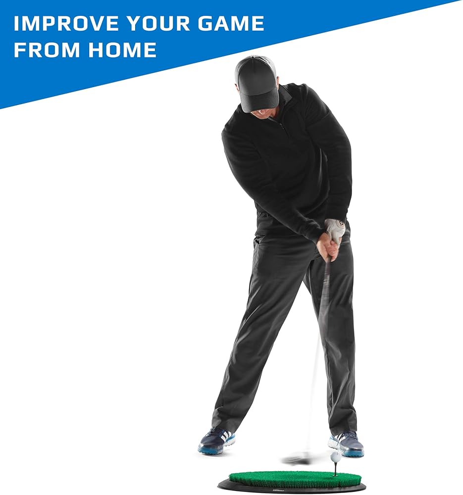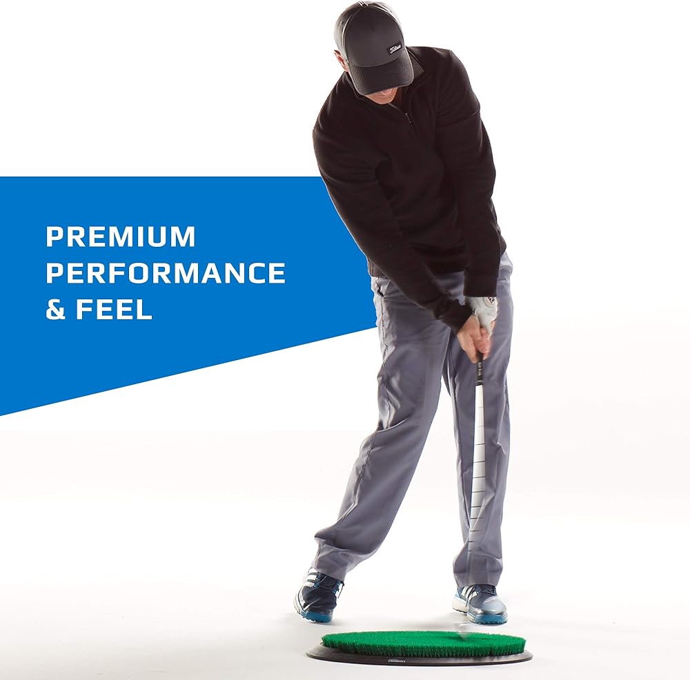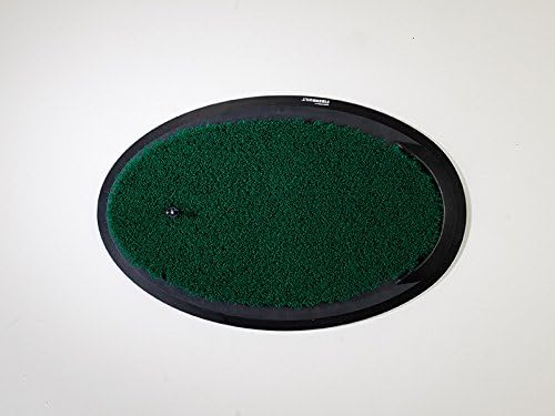 Oval Shape Golf Hitting Mat: Oval shape hitting surface teaches swing path and alignment for better on course performance for all clubs. Measures 21.25" x 13.5" x 17.5"