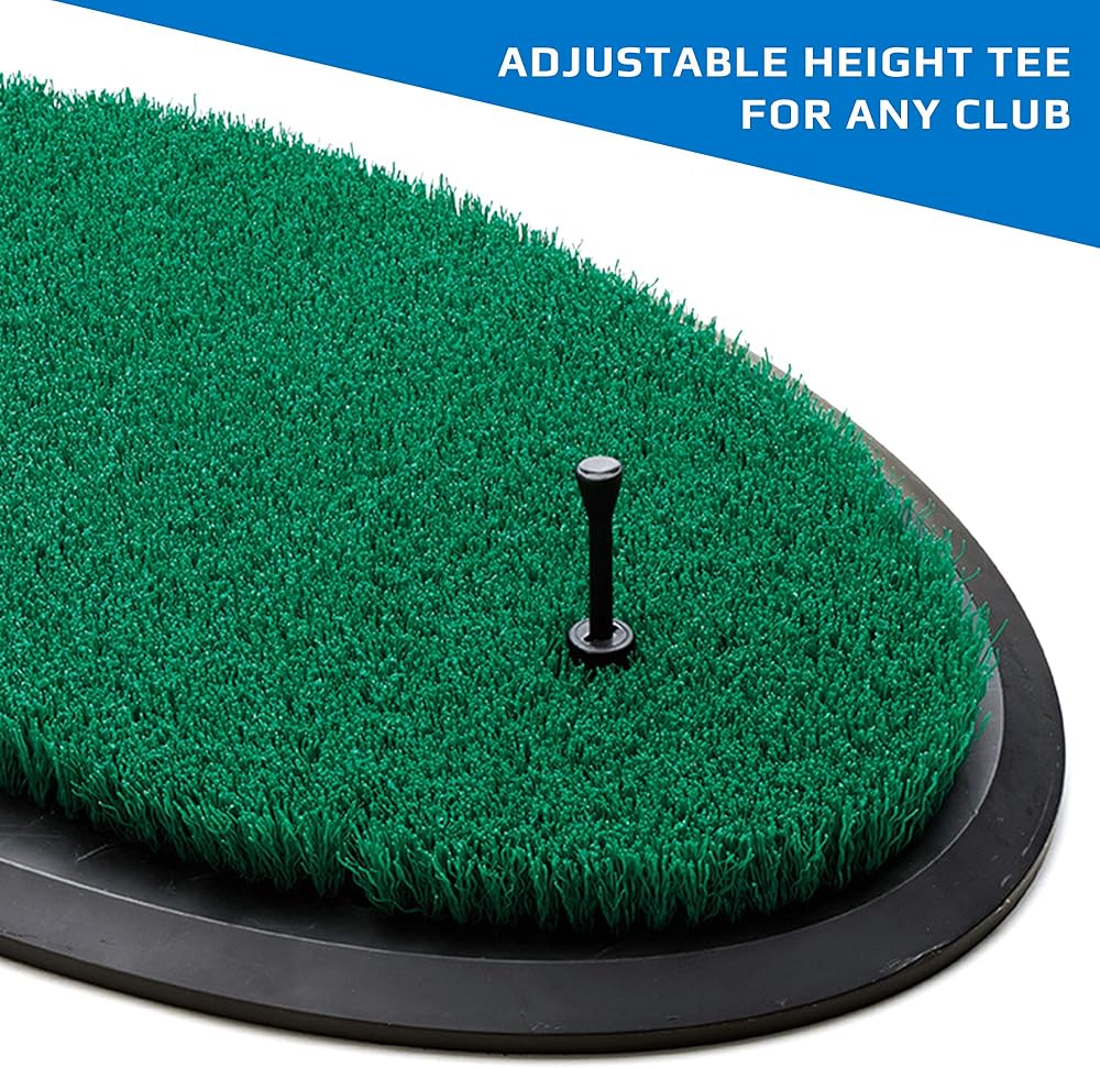 Tee shots with any golf club: Durable, adjustable height tee (up to 2”) included, for practicing tee shots with any club, from oversized drivers, to fairway woods, to hybrids, to irons