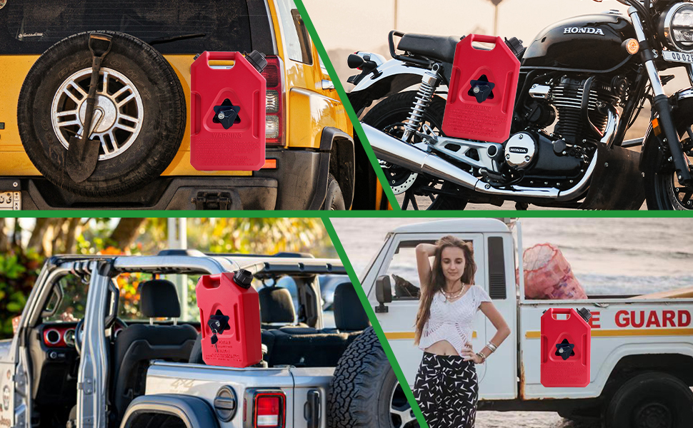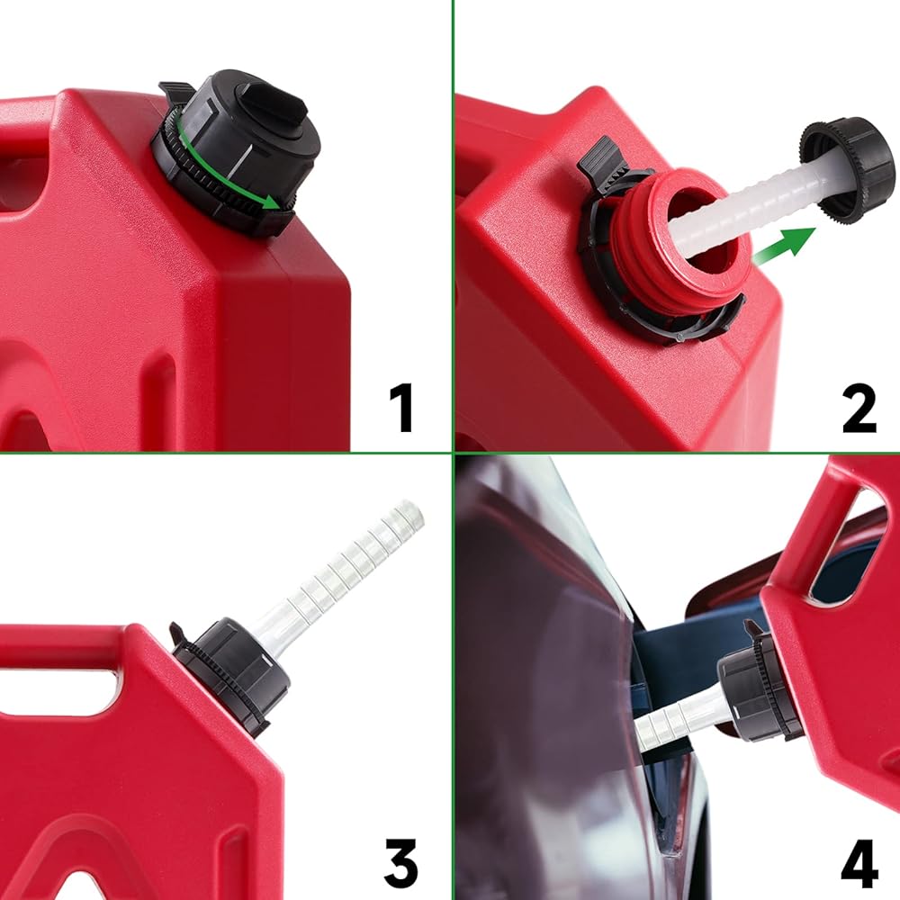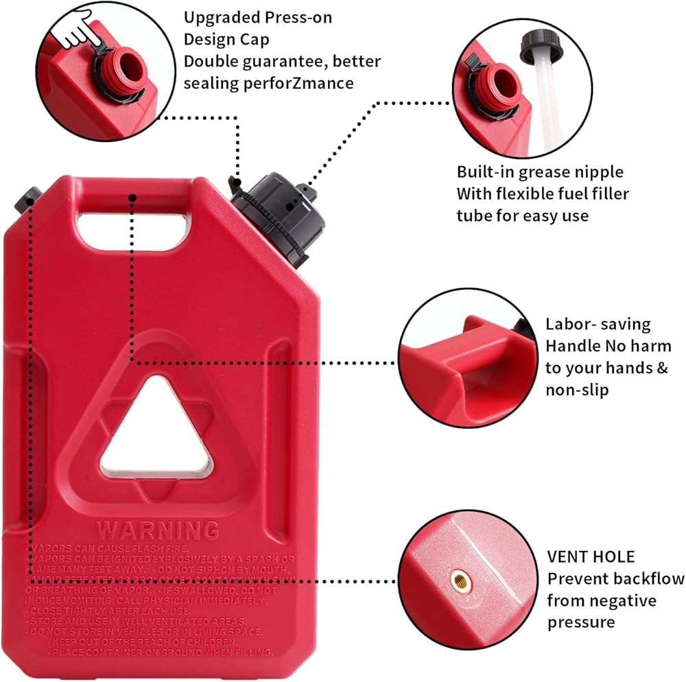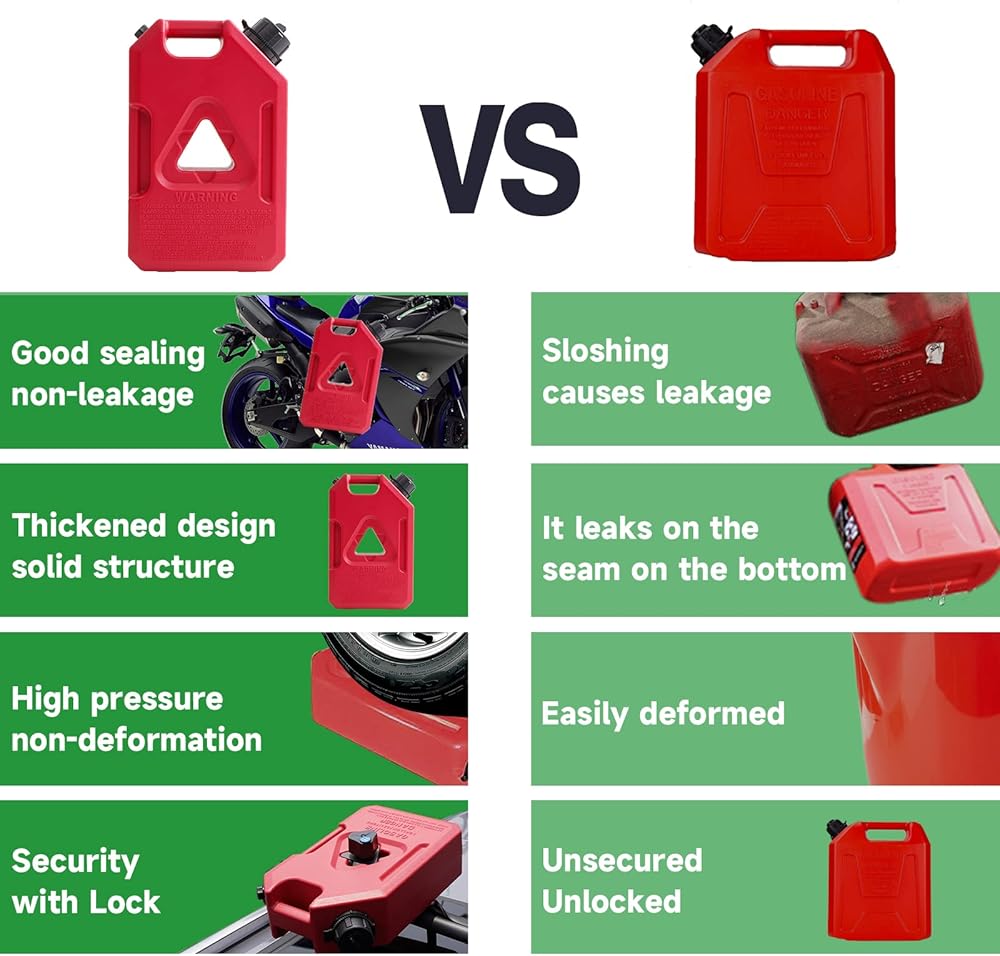 • 👍مادة عالية الجودة: من أجل تحسين أداء سلامة المنتج، فإن خزان الغاز مصنوع من بلاستيك البولي إيثيلين عالي الكثافة، وهو مضاد للتآكل ومضاد للكهرباء الساكنة ومضاد للأشعة فوق البنفسجية؛ فوهة الوقود المدمجة مع أنبوب التزود بالوقود المرن، والتي يمكن إدخالها بسهولة في فتحة الخزان، وتصميم صمام الهواء يمكن أن يمنع التدفق الخلفي الناجم عن الضغط السلبي أثناء التزود بالوقود.