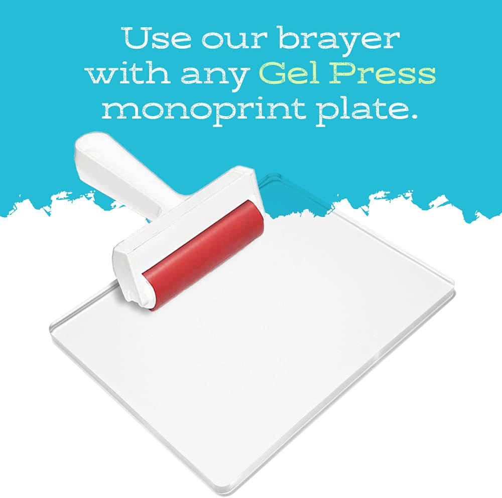 Gel Press Hard Rubber Brayer A must-have tool when working with Gel Press plates, this brayer is a hard roller made from synthetic, latex free rubber. Use this brayer to apply and spread out paint onto the Gel Press monoprinting plates or the Impressables embossed gel plates. It is also often used to press the paper surface down evenly onto a plate to maximise results. The robust brayer can handle heavy usage and the 4” roller snaps out for easy cleaning. Create amazing effects by embellishing the brayer with rubber bands, bubble wrap, burlap, lace and more. The handle of this brayer is made out of plastic and has a comfortable grip that fits nicely into the palm of your hand. Enjoy making mess-free prints thanks to this brayer!