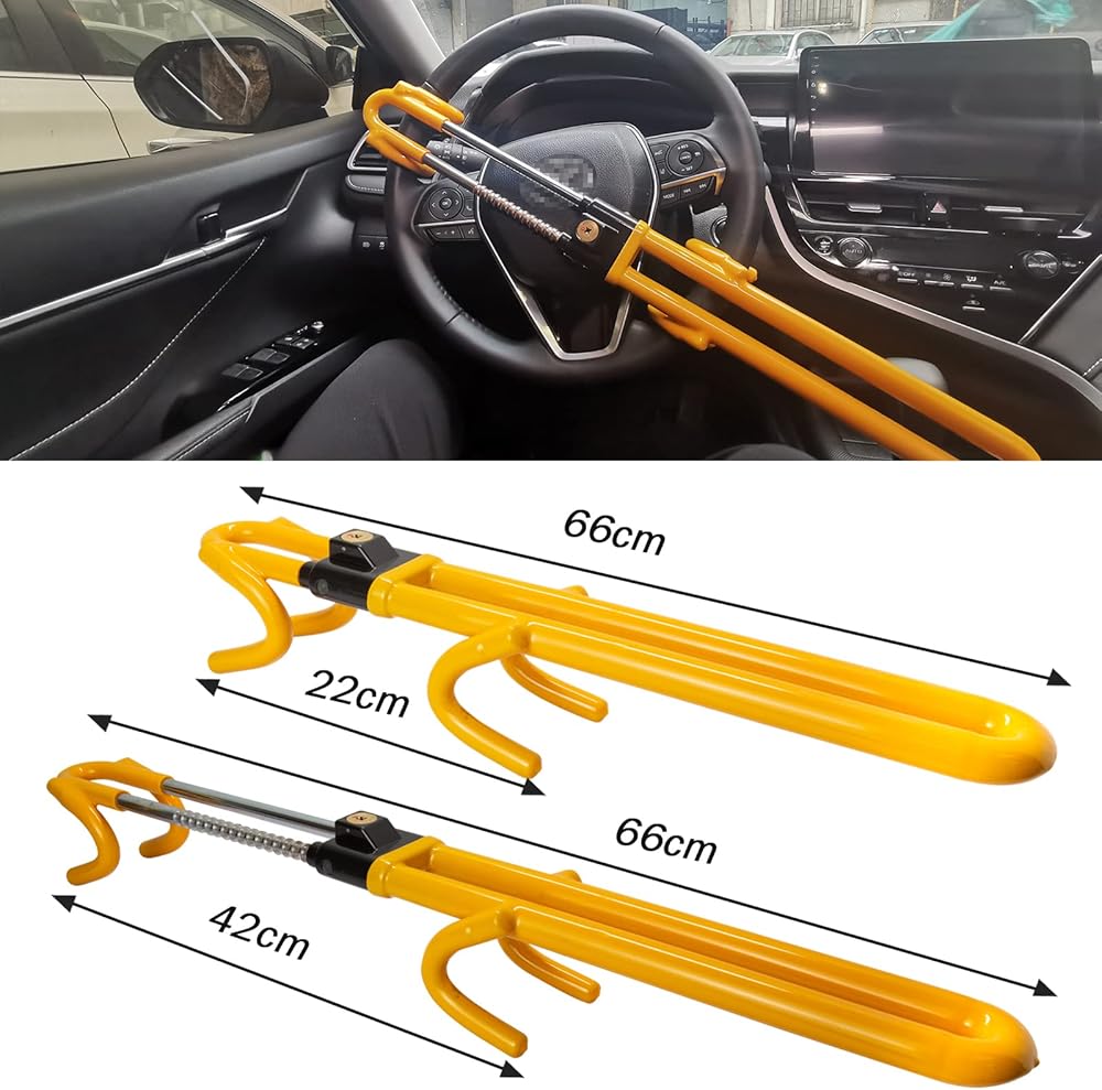 قفل عجلة القيادة Vechkom مضاد للسرقة، قفل أمان السيارة شديد التحمل، حماية قابلة للسحب للسيارات/الشاحنة/سيارات الدفع الرباعي، أصفر